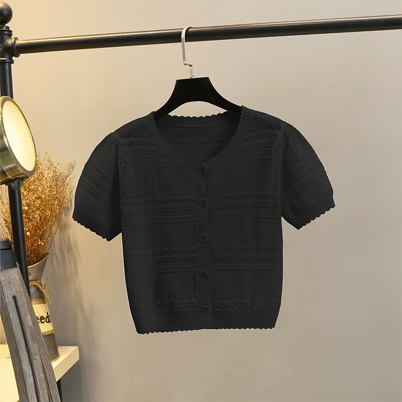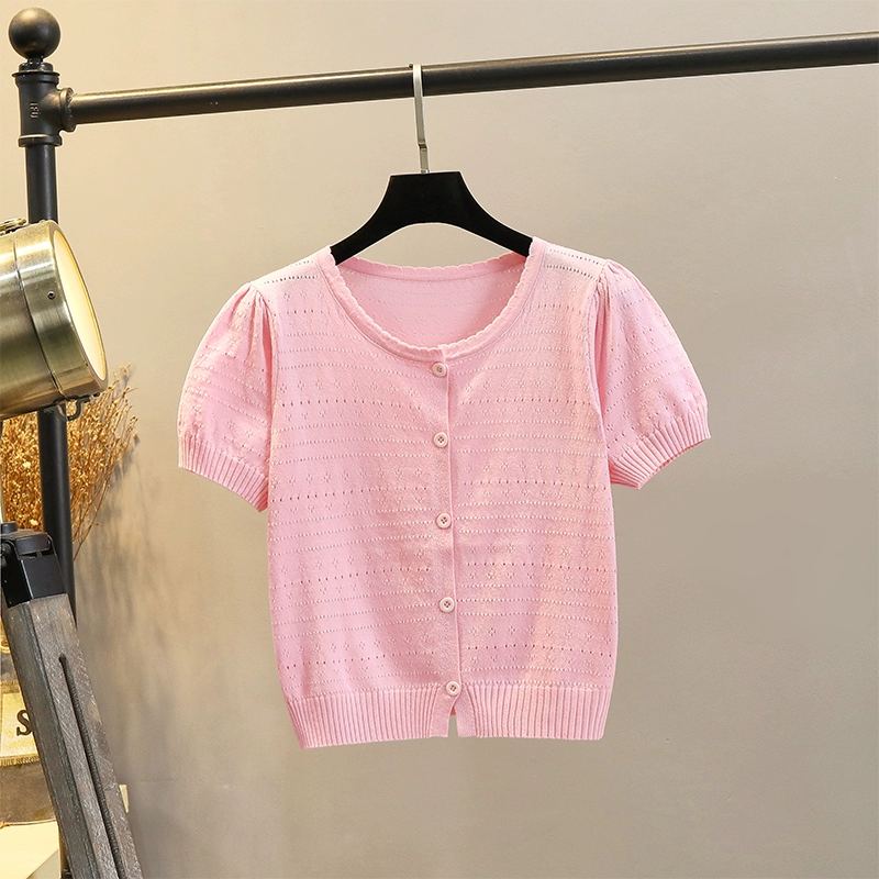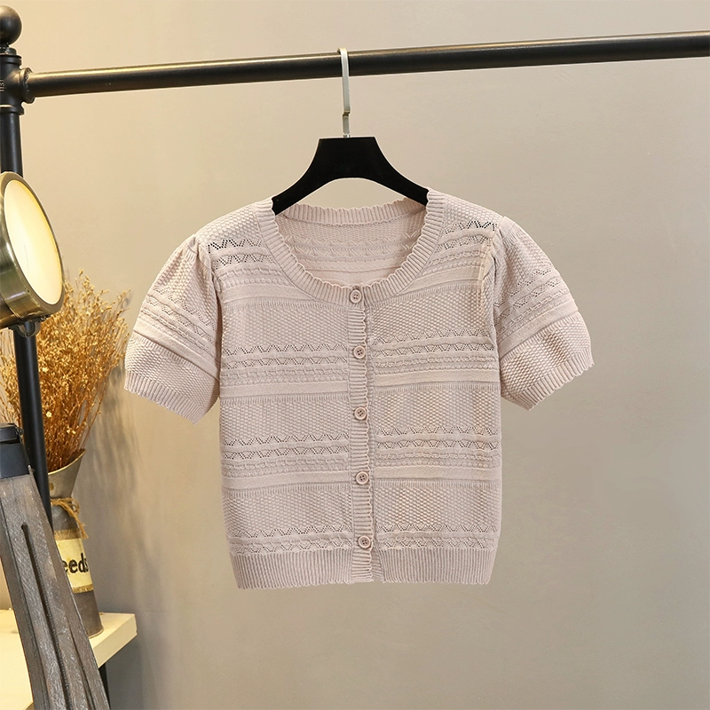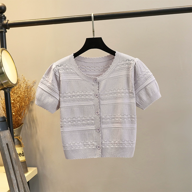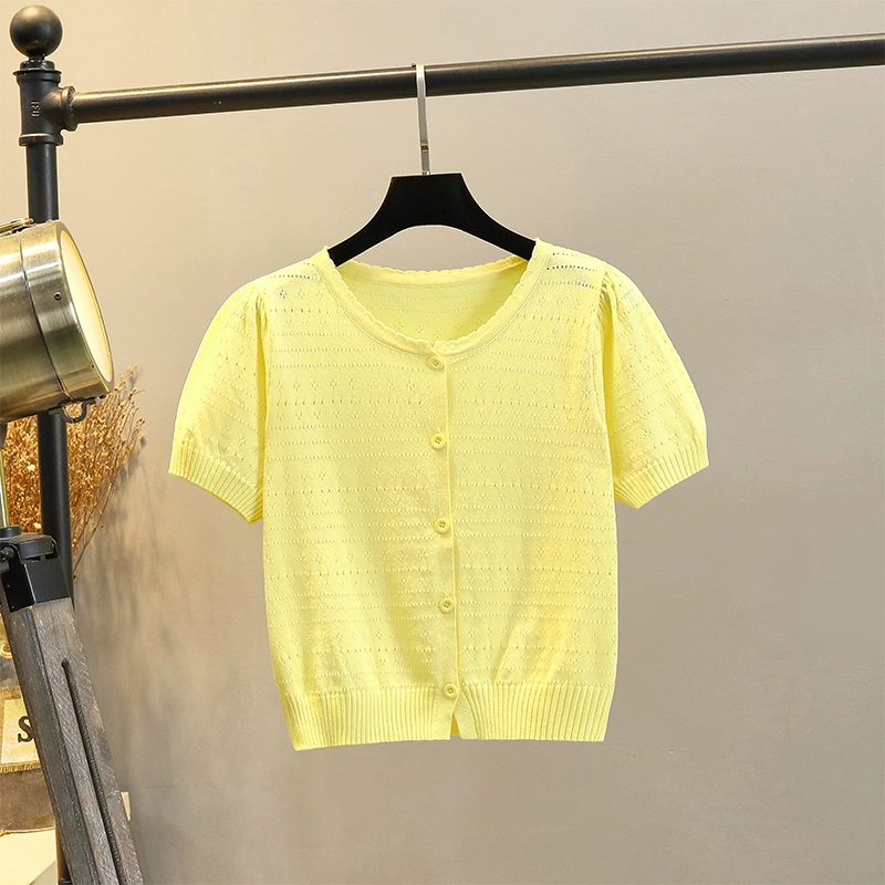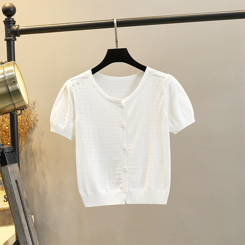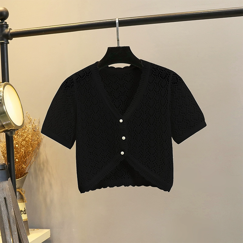 | nameOriginal | Ice silk hollow cardigan short-sleeved knitted shawl summer thin outer wear short high-waisted sun protection top for small women |