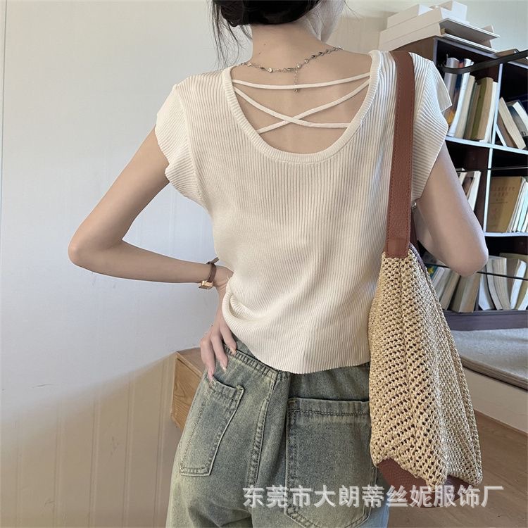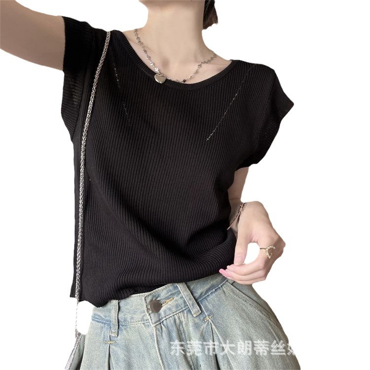 | nameOriginal | Ice Silk hollow sweater women's summer 2023 new vest flying sleeve T-shirt thin slim chic small top |