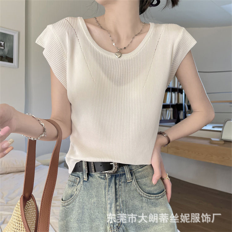 | nameOriginal | Ice Silk hollow sweater women's summer 2023 new vest flying sleeve T-shirt thin slim chic small top |