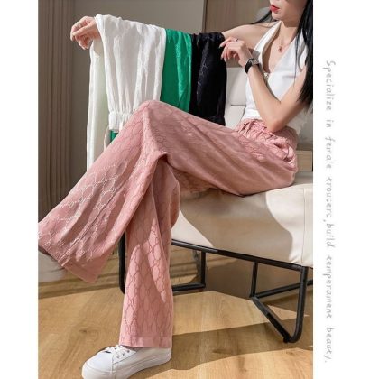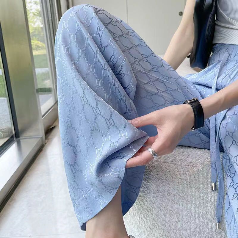 Ice Silk Jacquard Casual Wide Leg Pants Women’s Summer New High Waist Slimming Thin Loose Dopping Long Pants