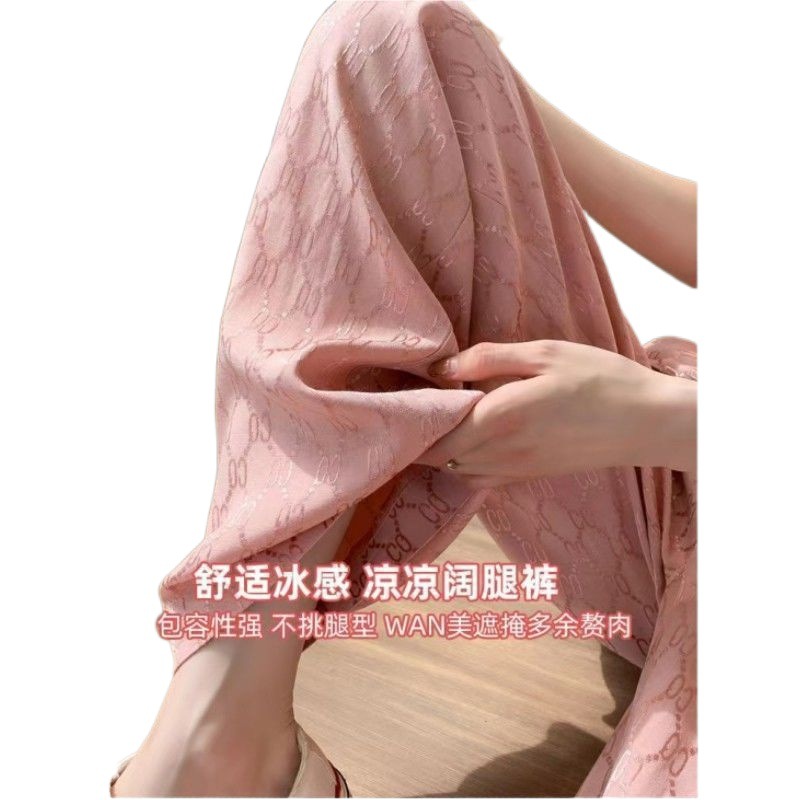 Ice Silk Jacquard Casual Wide Leg Pants Women's Summer New High Waist Slimming Thin Loose Dopping Long Pants