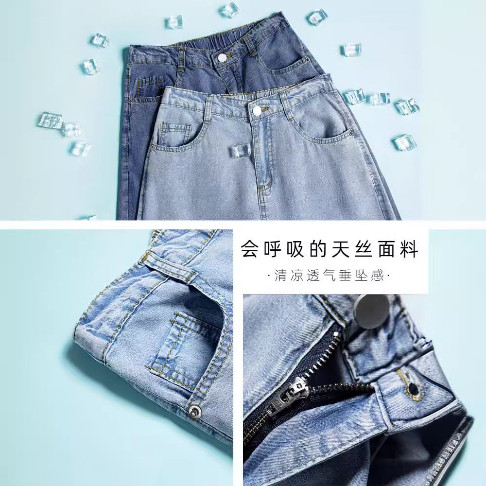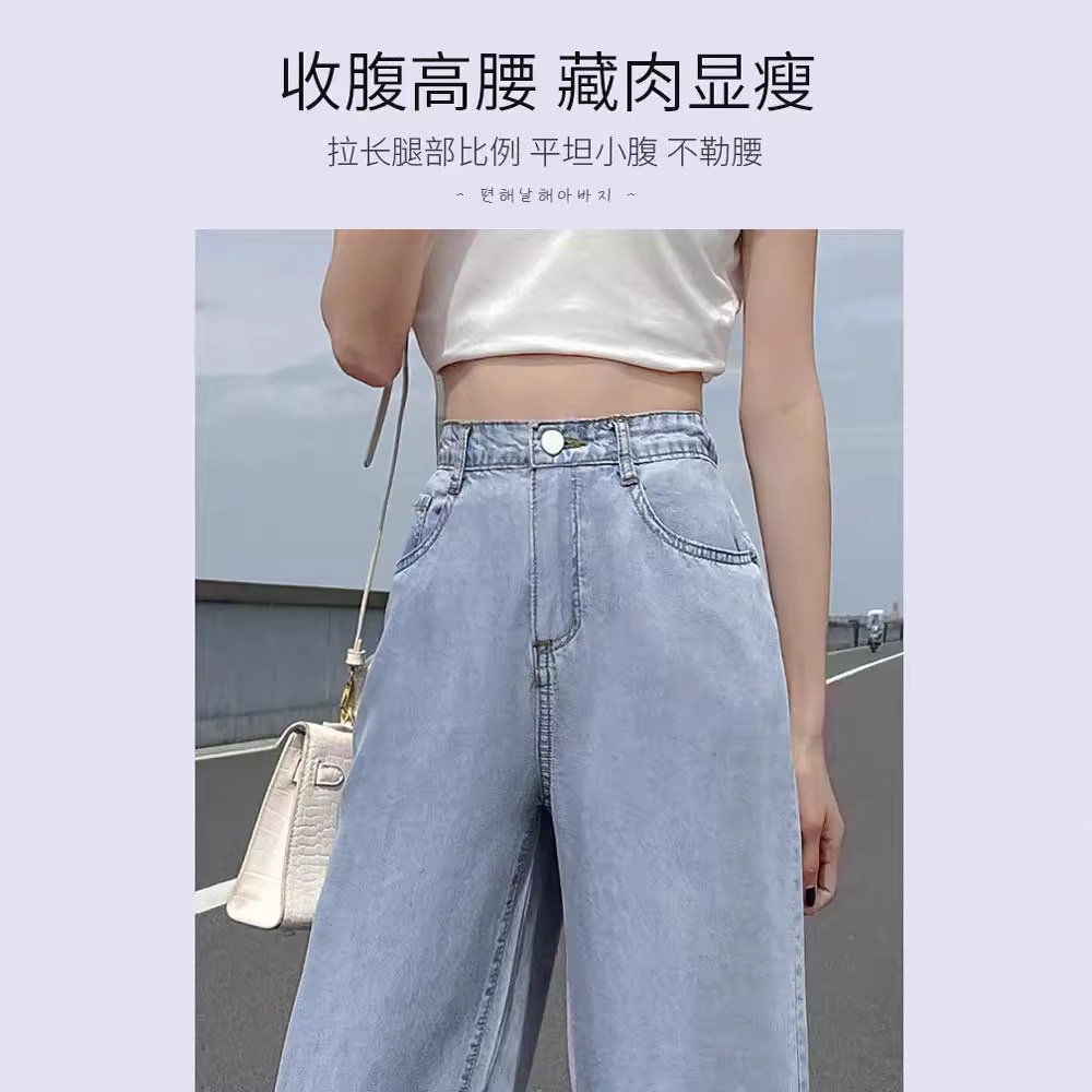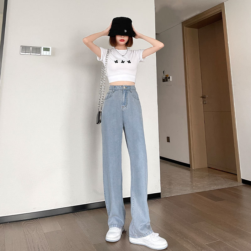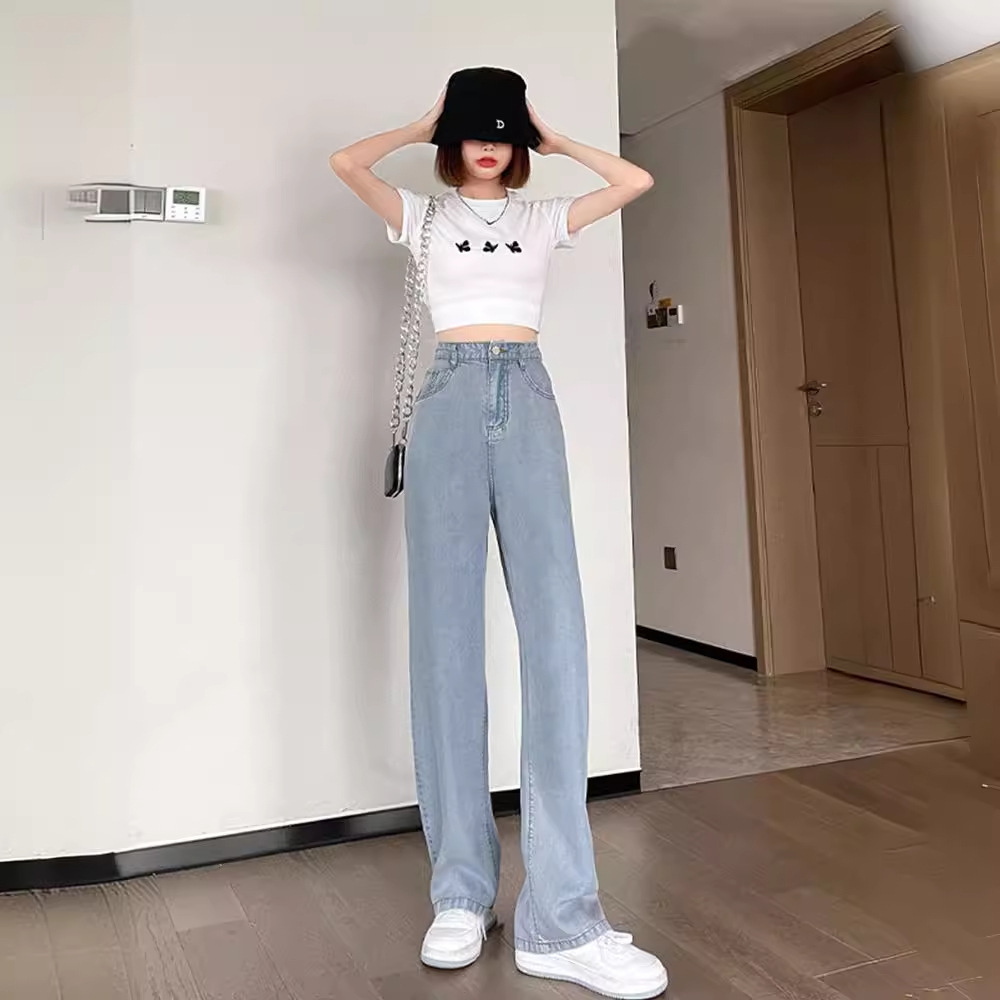 Ice Silk jeans women’s pants summer thin high waist loose straight chic Daddy summer light color Tencel wide leg pants