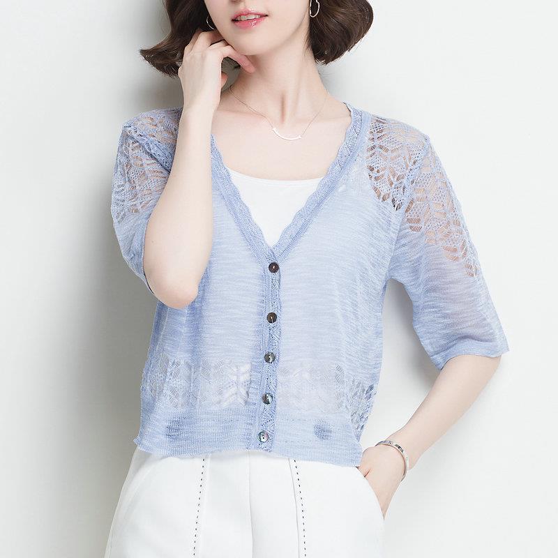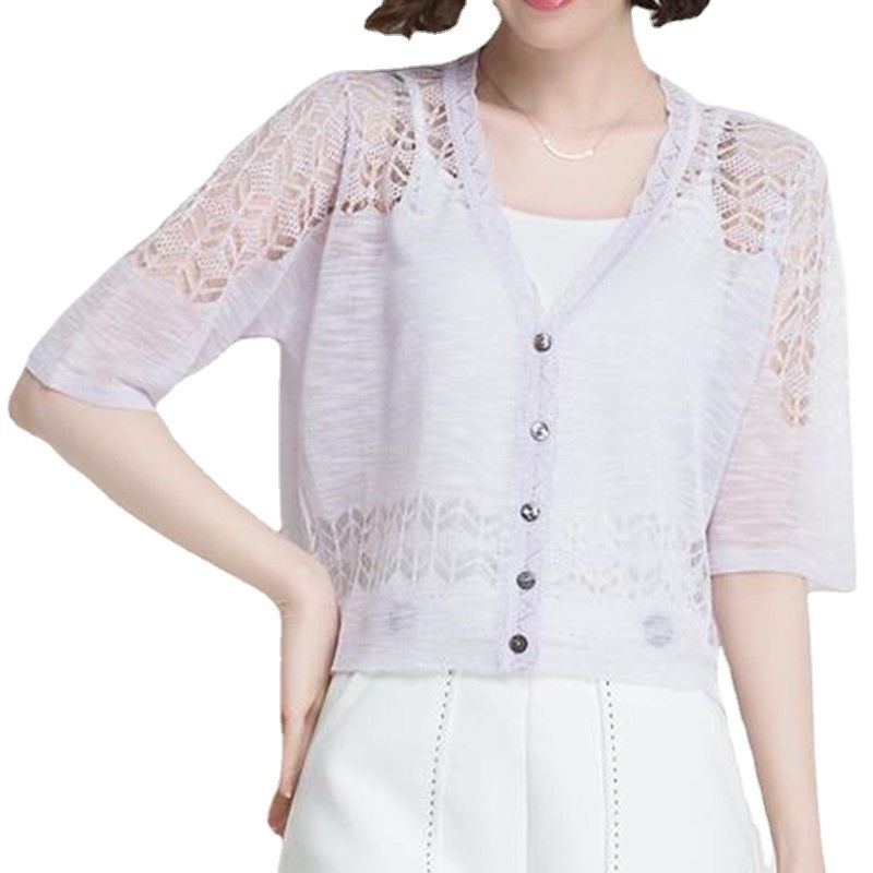 | nameOriginal | Ice Silk knitted cardigan outer wear short sleeve summer women's 2024 New Thin hollow white shawl sun protection clothing |