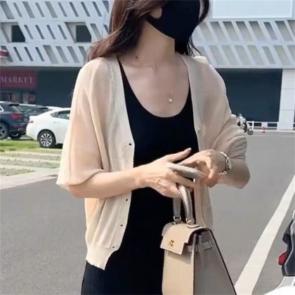 | nameOriginal | Ice Silk Knitted Cardigan Women's Summer 2024 New Style Outer Wear Thin Skirt with Suspender Shawl Top Loose Short Jacket |