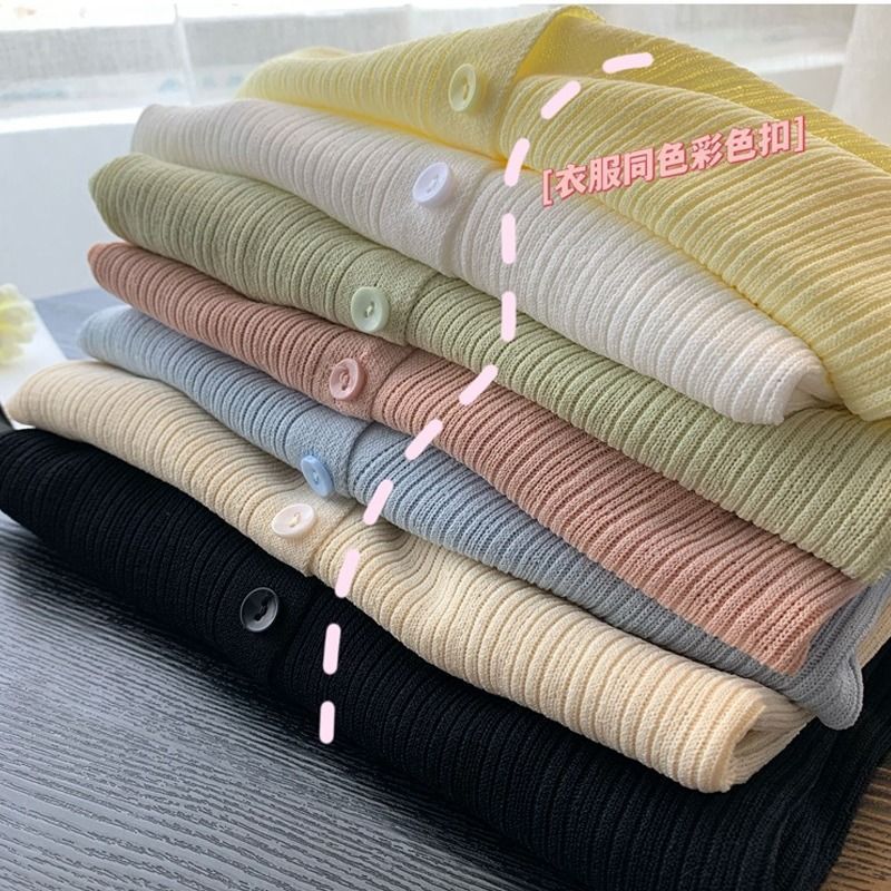 Ice Silk Knitted Cardigan Women's Thin 2024 Summer New Gentle Style V-Neck Slim-Fit Sunscreen Sweater Top