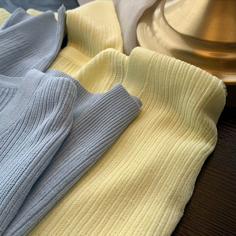 Ice Silk Knitted Cardigan Women’s Thin 2024 Summer New Gentle Style V-Neck Slim-Fit Sunscreen Sweater Top