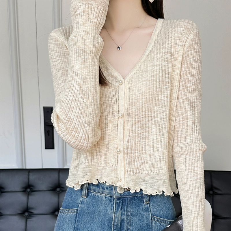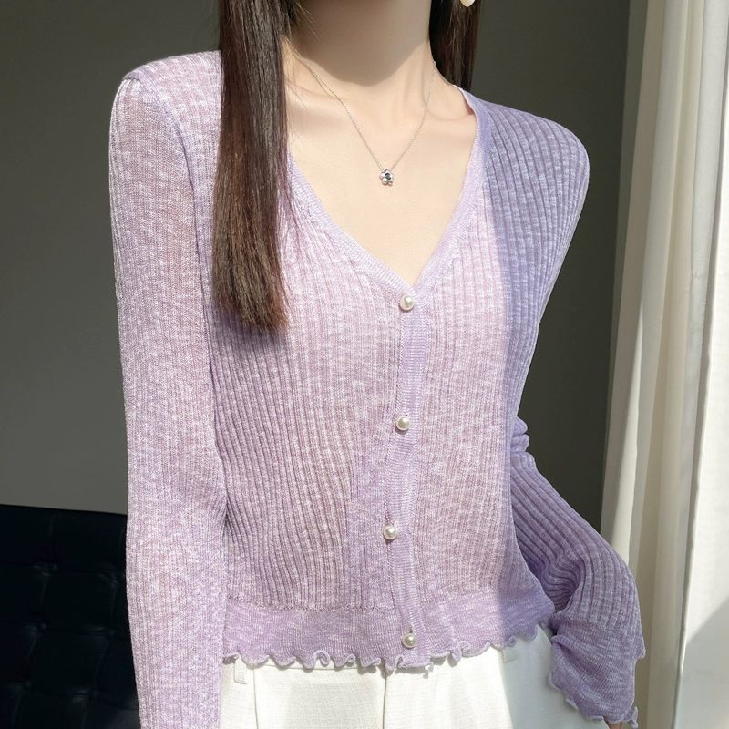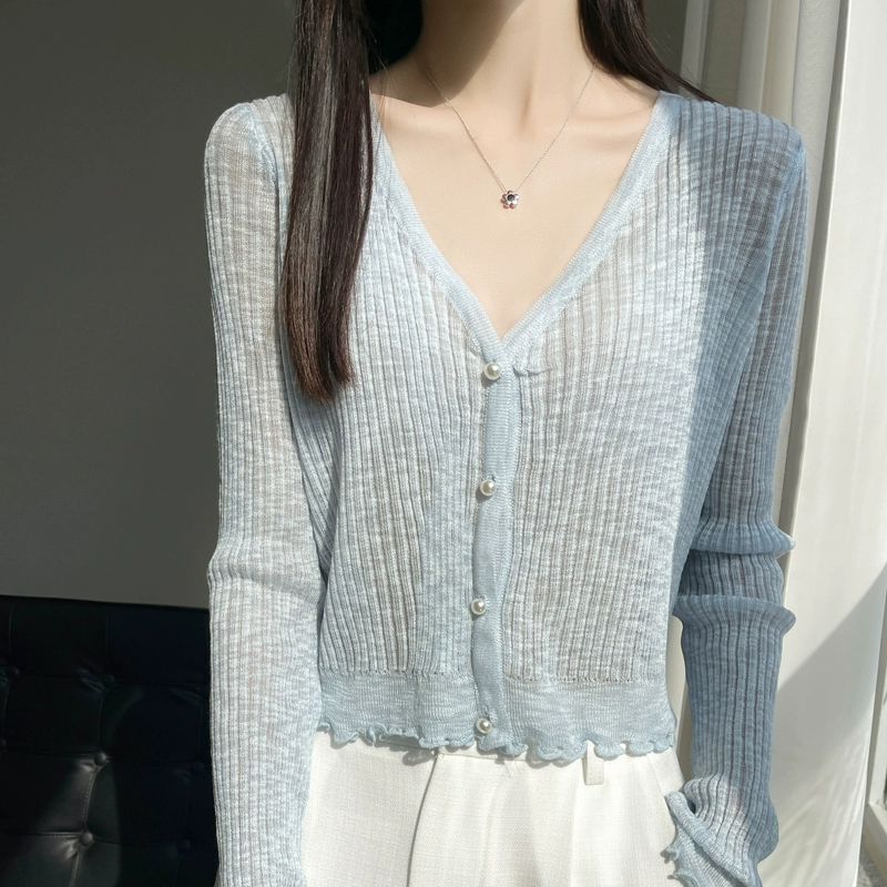 | nameOriginal | Ice silk knitted cardigan women's thin coat shawl short outer matching skirt sun protection shirt summer top small blouse |