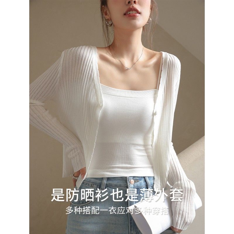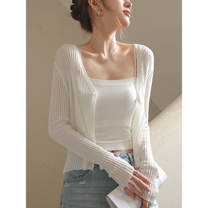 | nameOriginal | Ice Silk Knitted Cardigan Women's Thin Summer Design Sense Strap Skirt with White Shawl Sunscreen Air Conditioning Blouse |