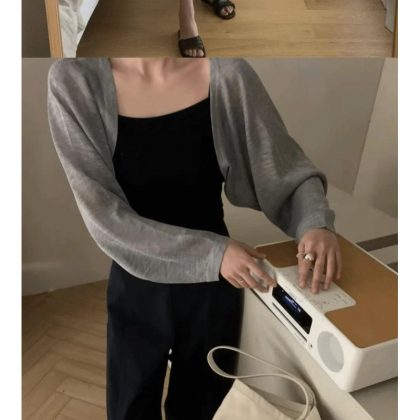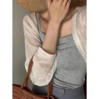 | nameOriginal | Ice Silk Knitted Sunscreen Cardigan Women's 2024 Summer New Arrival Slip Skirt Outer Blouse Short Small Shawl Top |