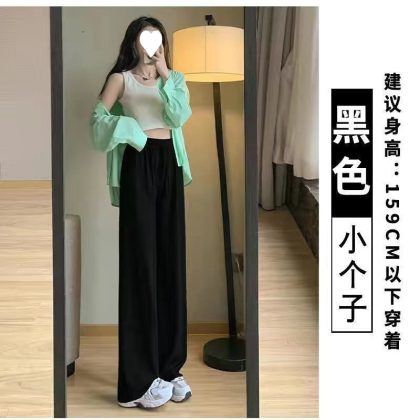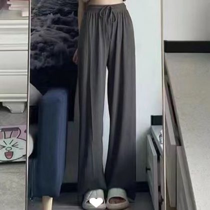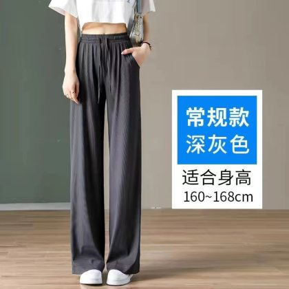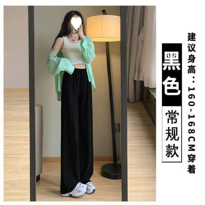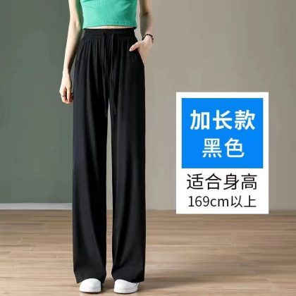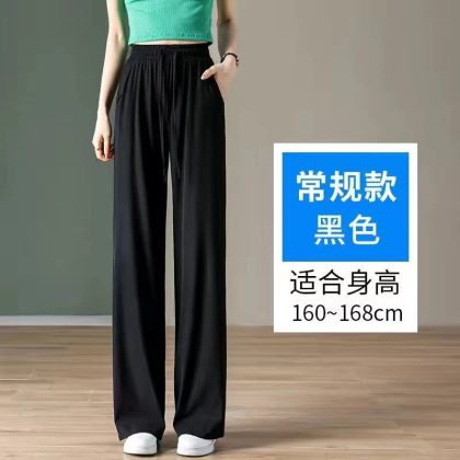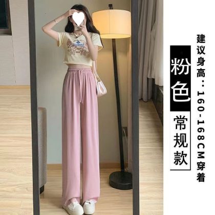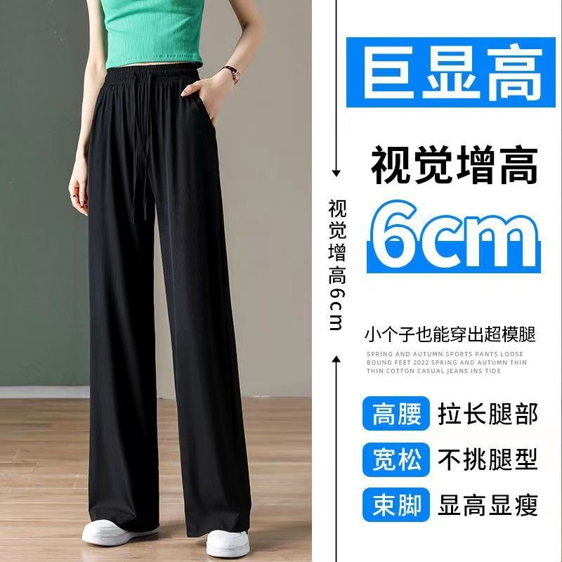 Ice Silk Large Size Casual Pants Women’s Wide Leg Pants Summer 2023 New Arrival Loose Chubby Slimming Straight Trendy Trendy Trousers
