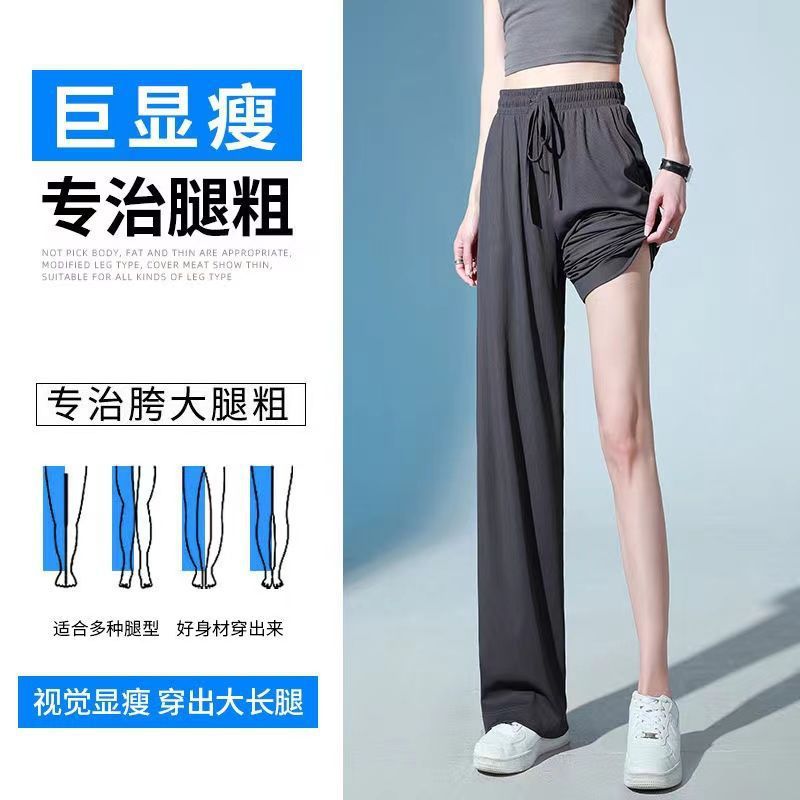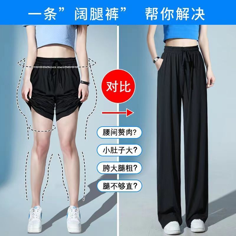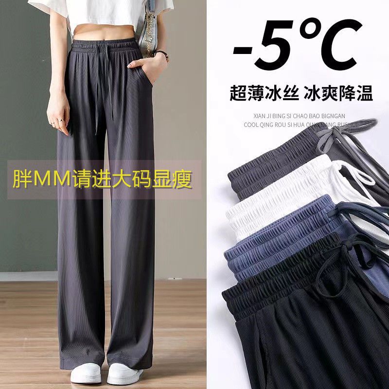 Ice Silk Large Size Casual Pants Women's Wide Leg Pants Summer 2023 New Arrival Loose Chubby Slimming Straight Trendy Trendy Trousers
