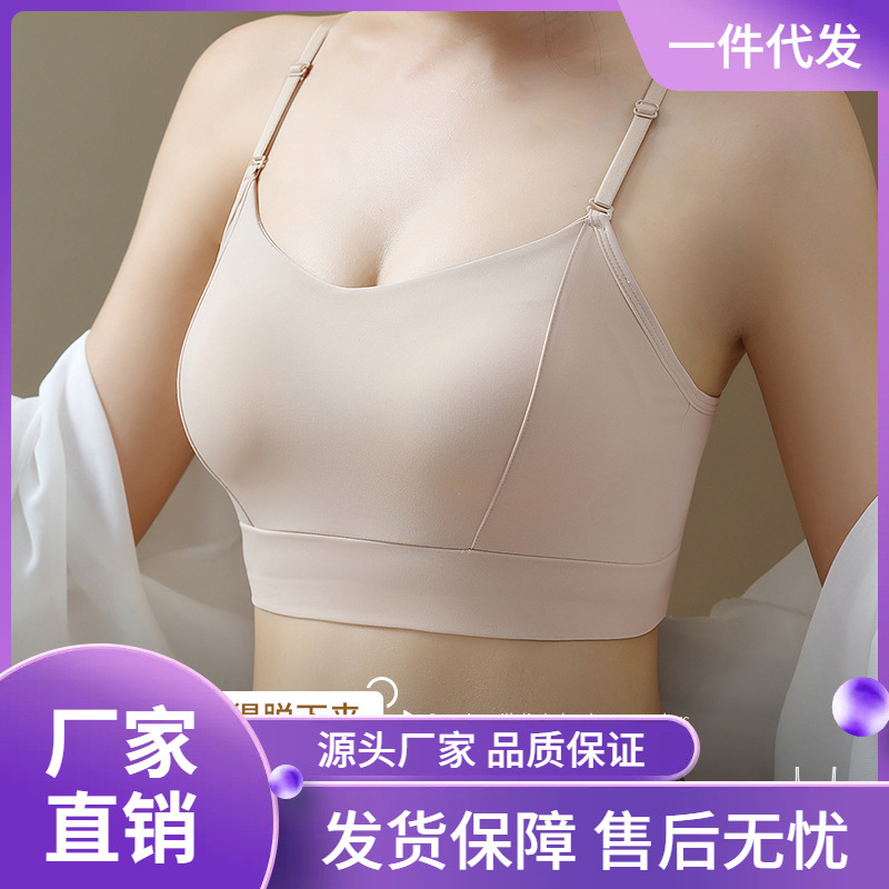 Ice Silk Large U-Back Naked Ice Silk Trameless Camisole Vest Women’s One-piece Fixed Thin Shoulder Strap Beautiful Back Wrapping Breast Tube Top