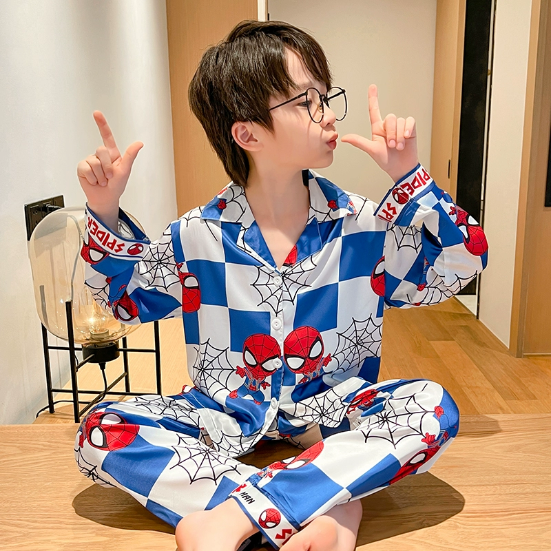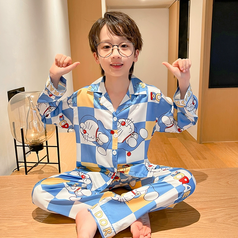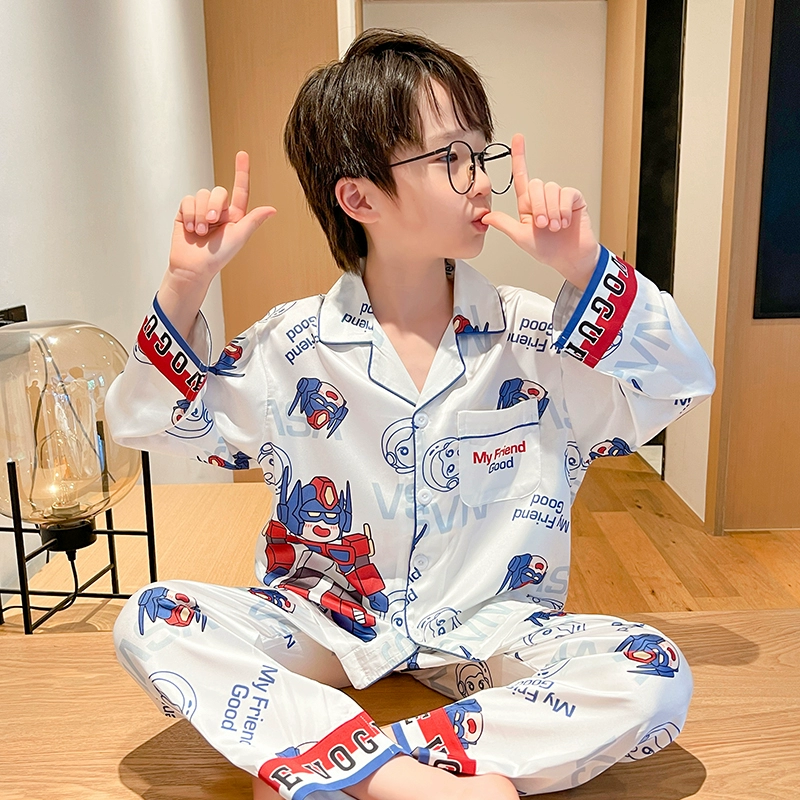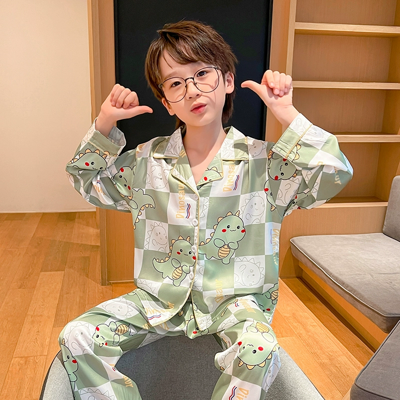 | nameOriginal | Ice silk long-sleeved cardigan for middle and large children summer air-conditioned pajamas |