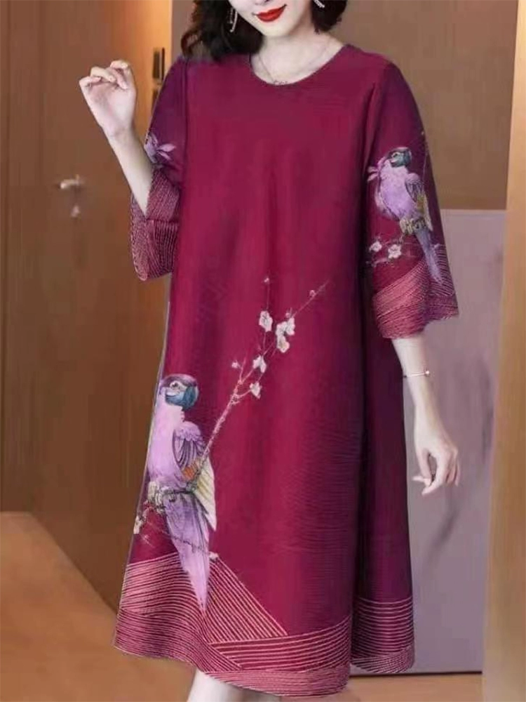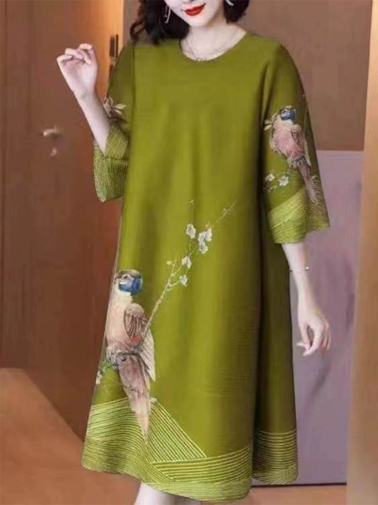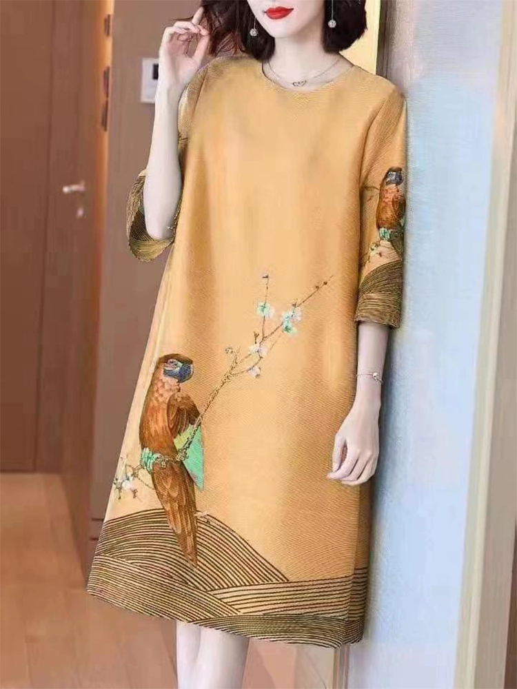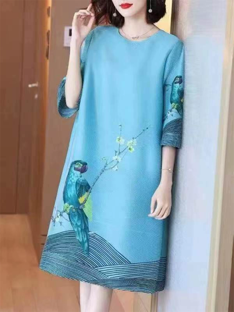 | nameOriginal | Ice silk loose belly-covering fashionable a-line printed dress |