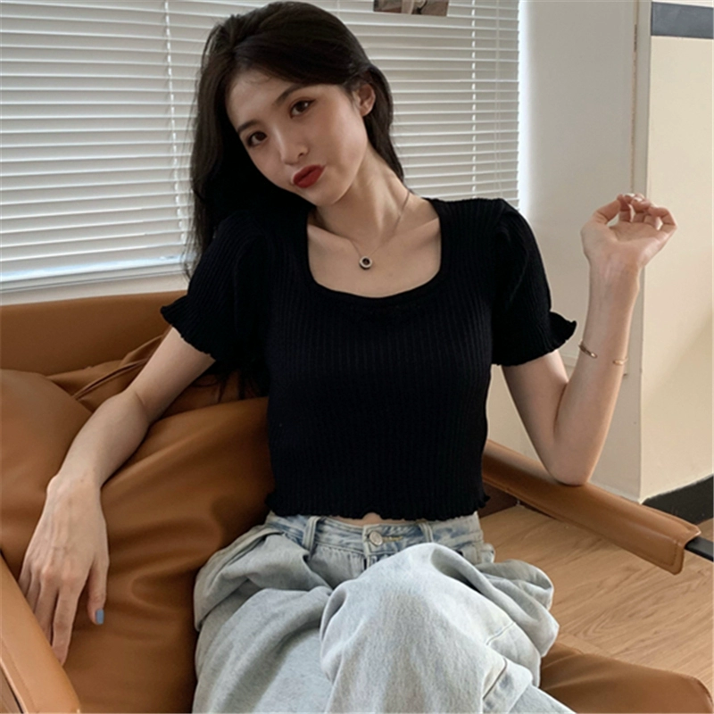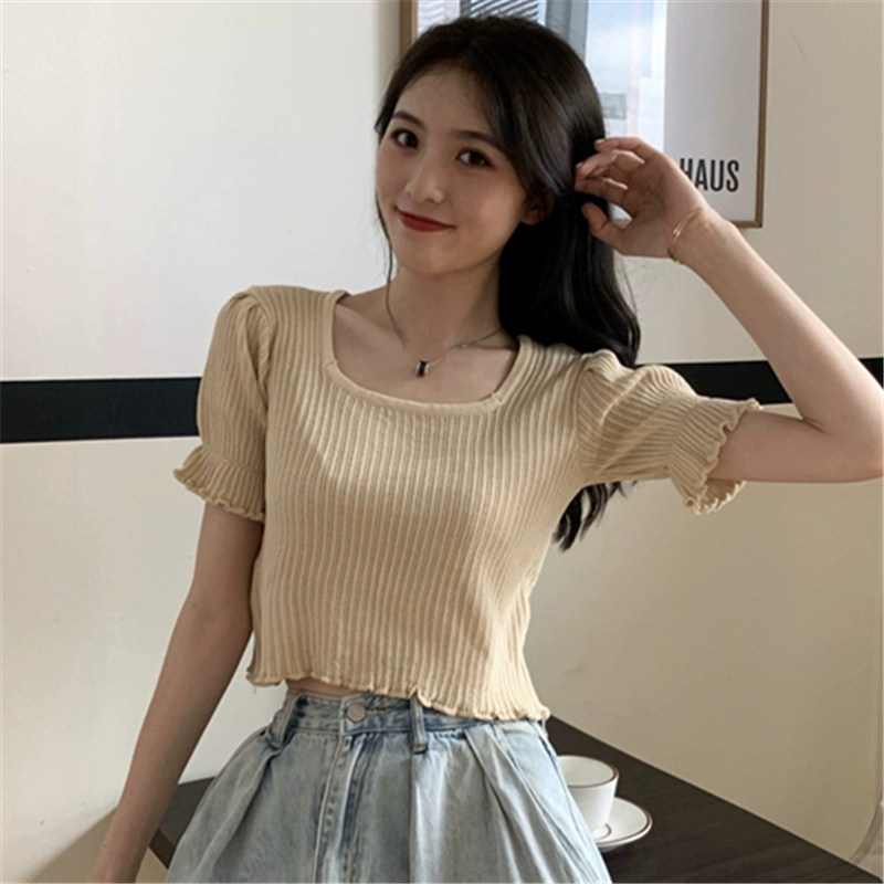 | nameOriginal | Ice silk loose navel-baring square neck sweater short-sleeved T-shirt |