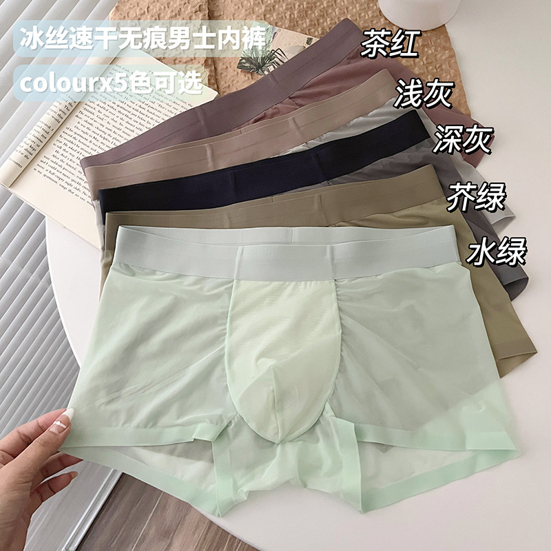 | nameOriginal | Ice Silk Men's Underwear Boys Teenager Traceless 2024 New Large Size Four Corner Breathable Cool Sense Shorts Head |