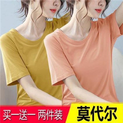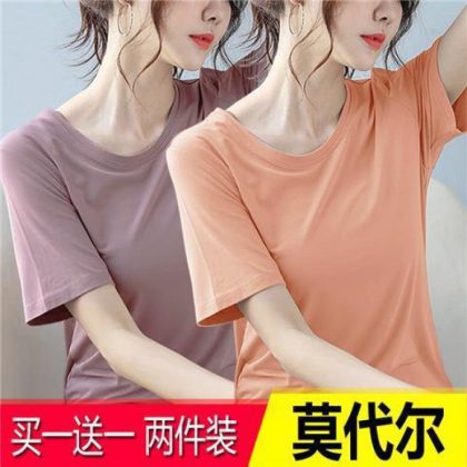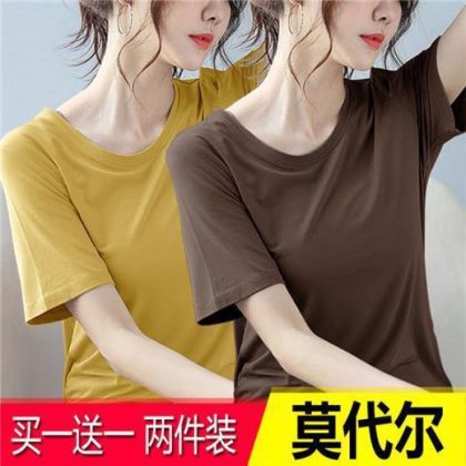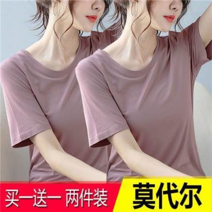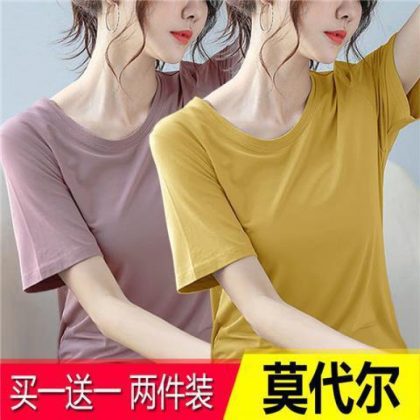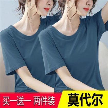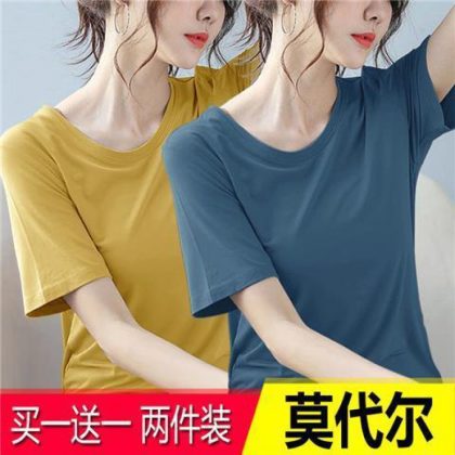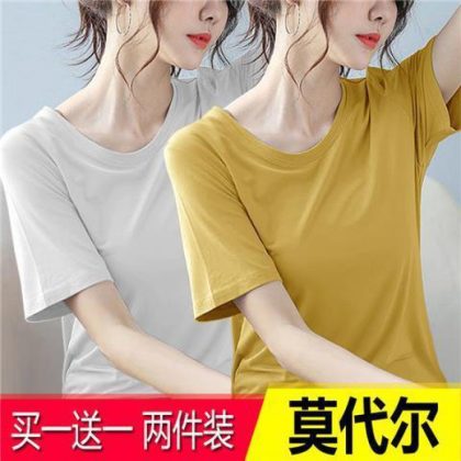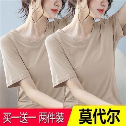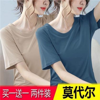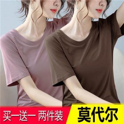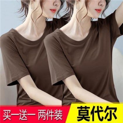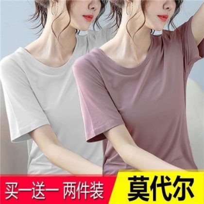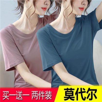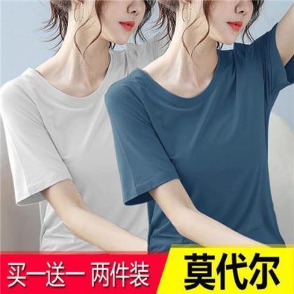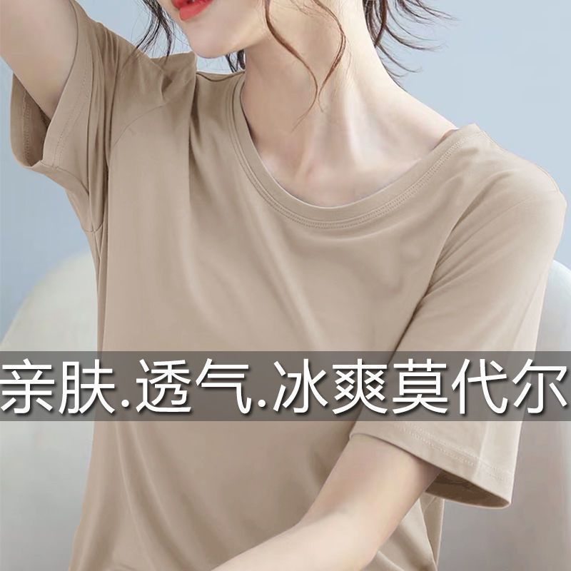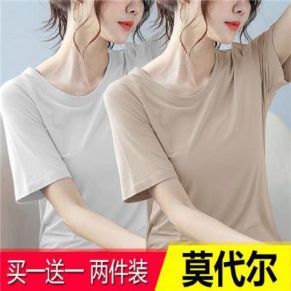 Ice Silk Modal Short-sleeved T-shirt Women’s Solid Color Top Summer Loose Korean-style Ins All-match Half-sleeved White Base Shirt
