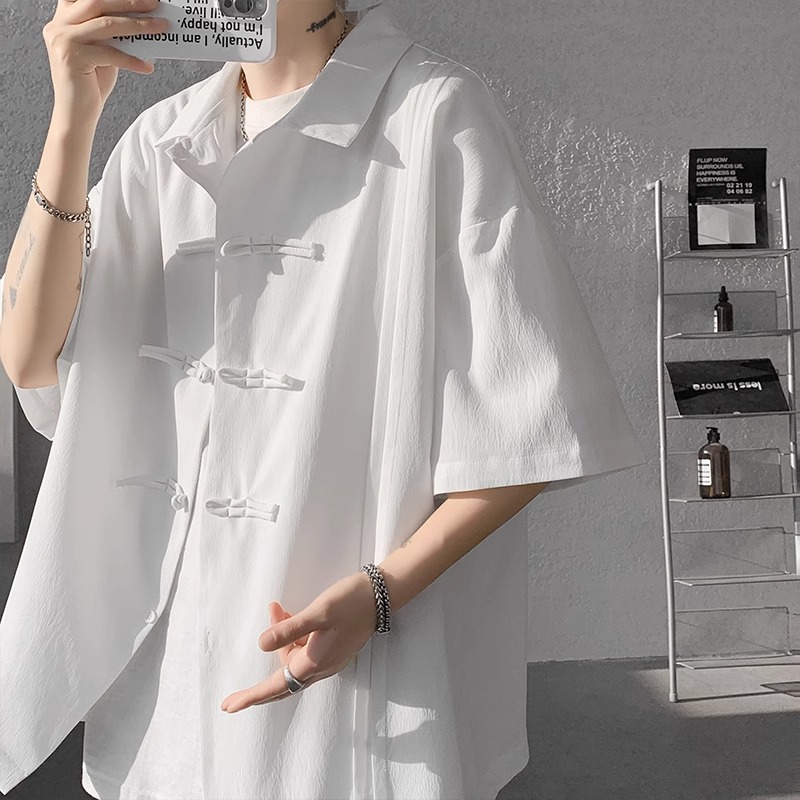 | nameOriginal | Ice Silk New Chinese Tang Coat White Buckle Sunscreen Shirt Taoist Robe Coat Summer Short-sleeved Shirt Men's plus size |