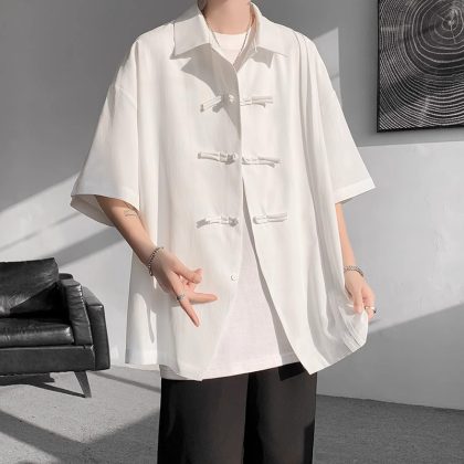 | nameOriginal | Ice Silk New Chinese Tang Coat White Buckle Sunscreen Shirt Taoist Robe Coat Summer Short-sleeved Shirt Men's plus size |