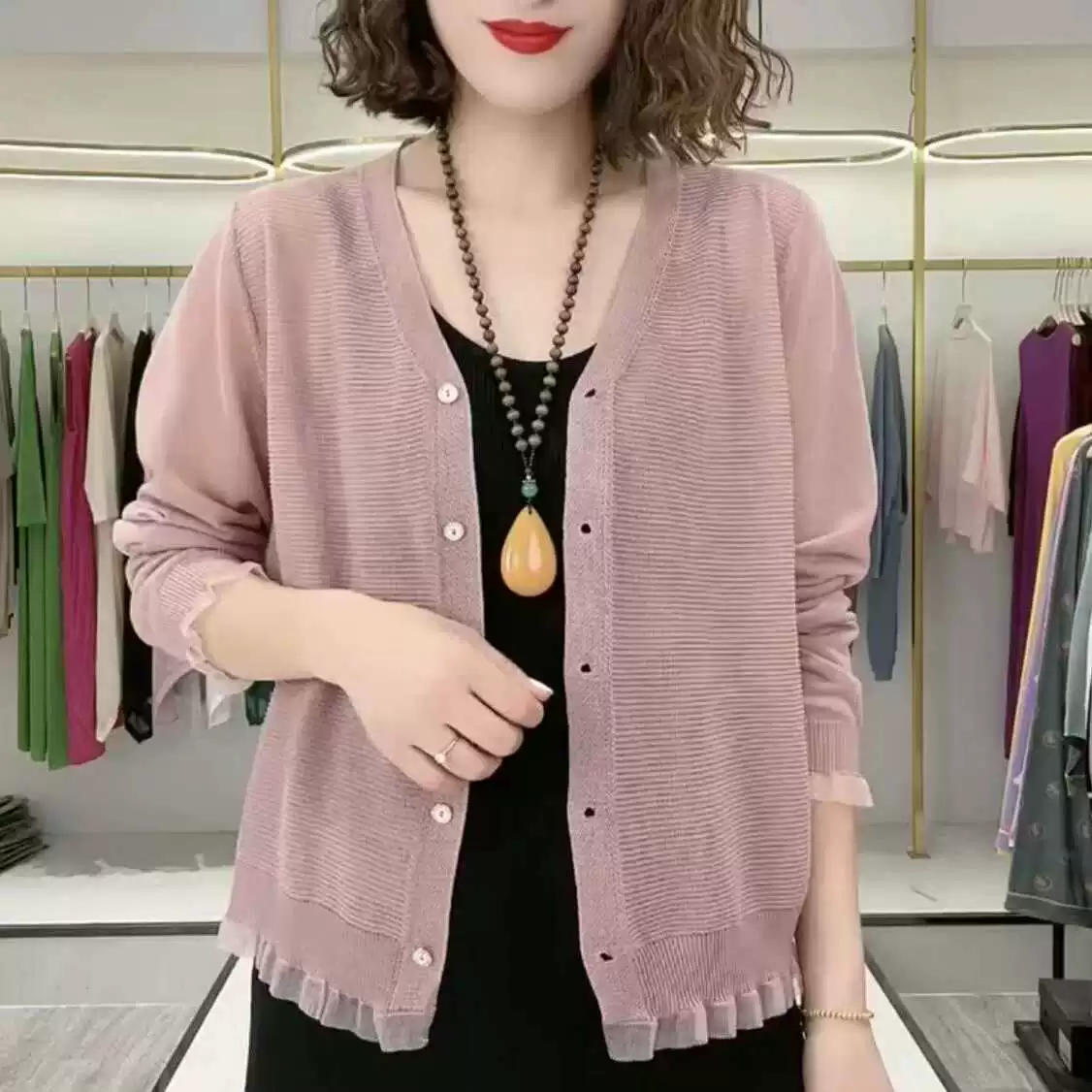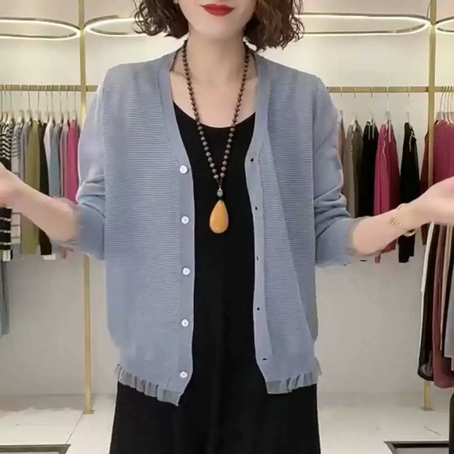 Ice silk outer wear mom wear sun protection top knitted cardigan