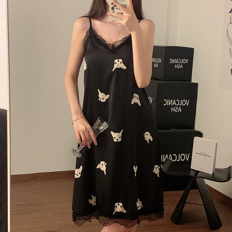 | nameOriginal | Ice Silk Pajamas Girls Summer Suspender Nightgown Cool Silk Belt Breast Pad Sexy Black 2024 New Home Clothes |