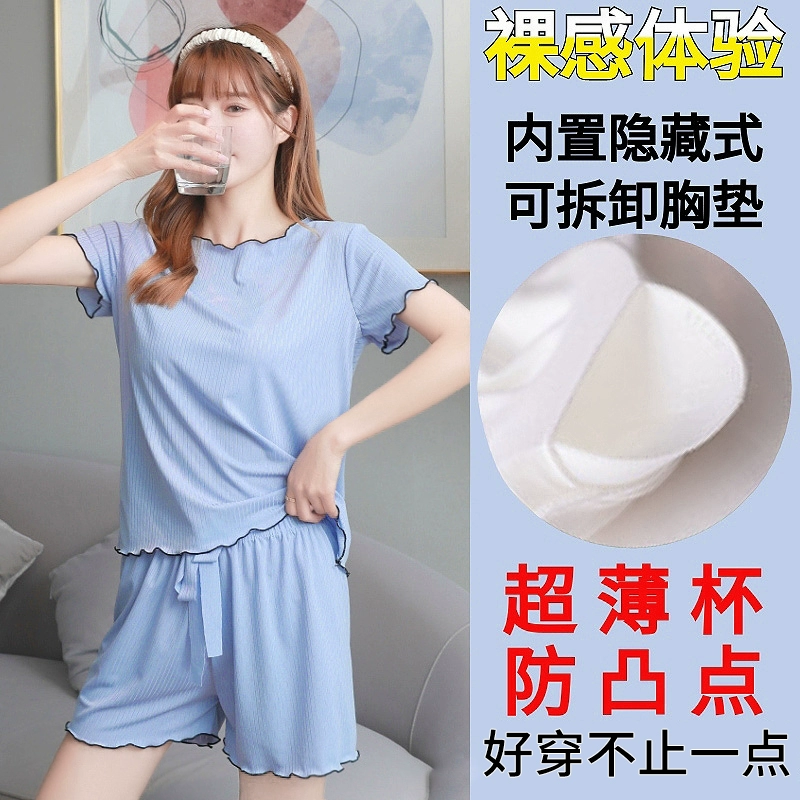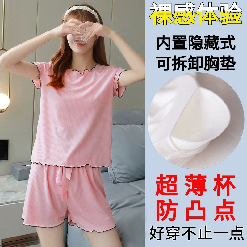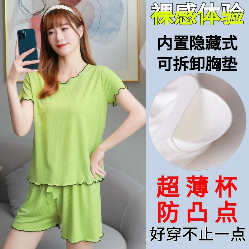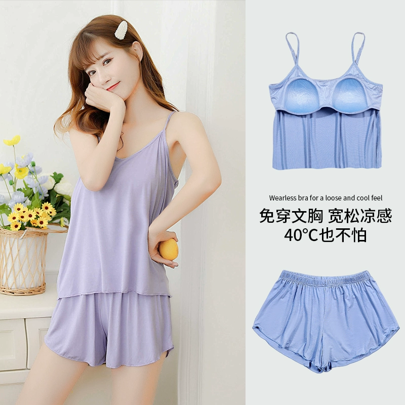 Ice Silk Pajamas Women's 2024 Summer New Summer Vest Suspender Home Clothes Summer Style Two-piece Suit with Chest Pad