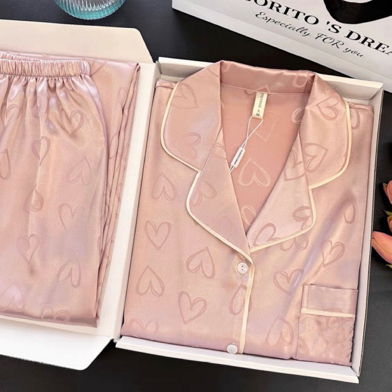| nameOriginal | Ice Silk Pajamas Women's Spring and Autumn Love New Style Home Clothes Autumn Women's plus size Style suit |