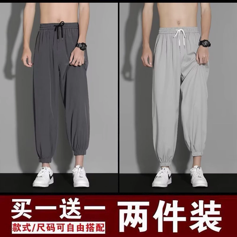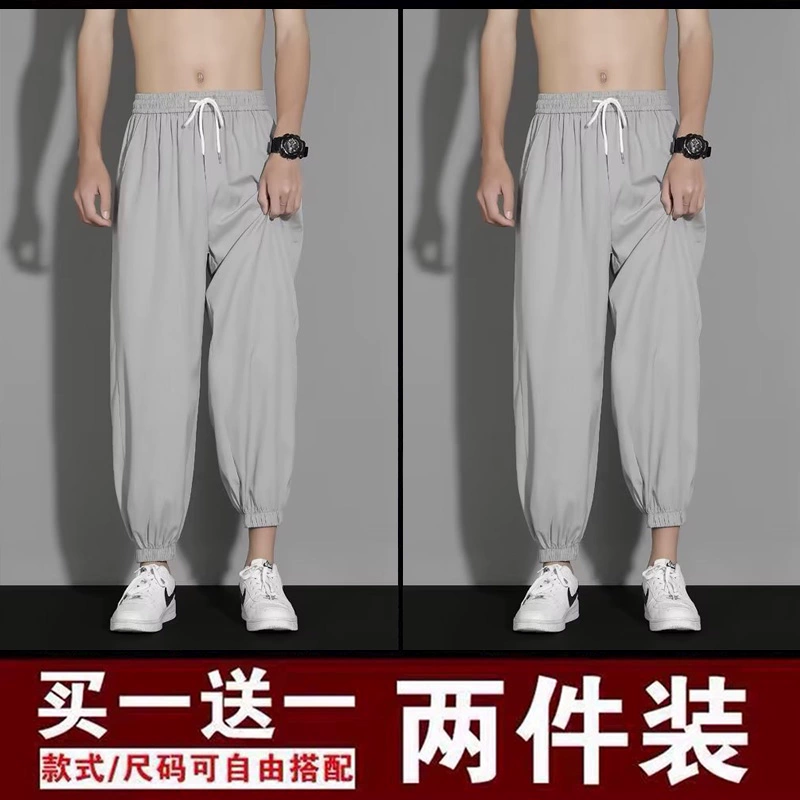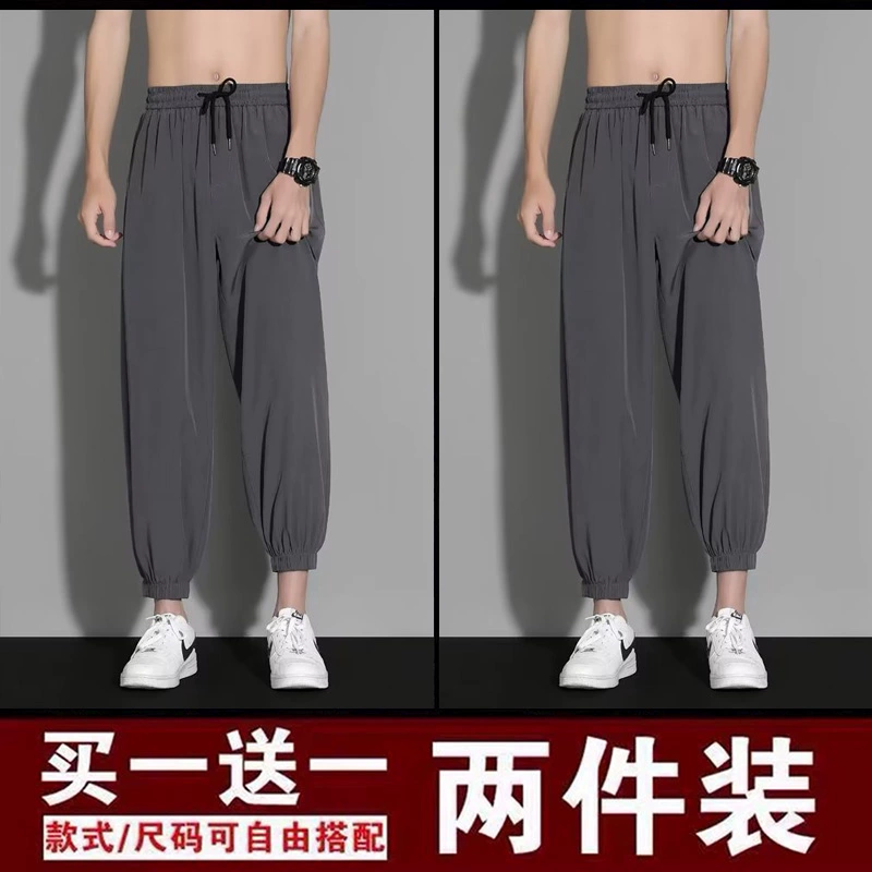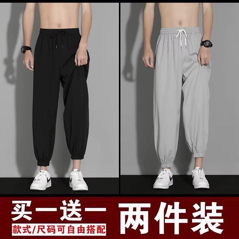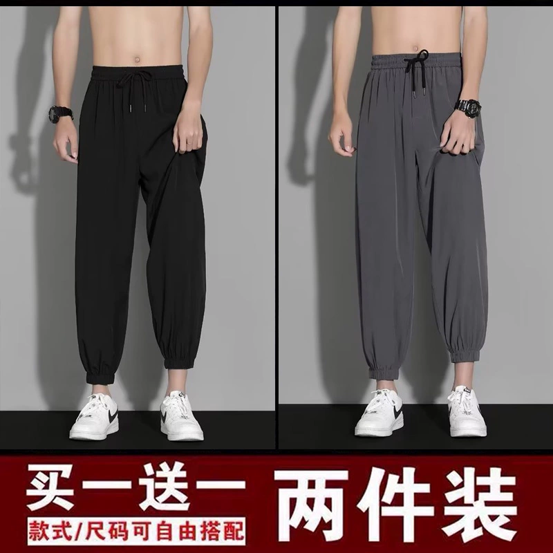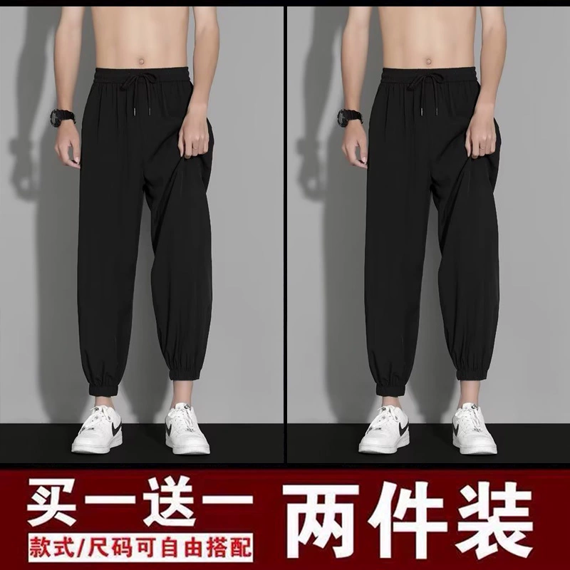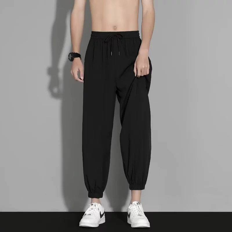 | nameOriginal | Ice silk pants men's summer thin loose-fitting quick-drying nine-point sweatpants trendy and versatile black casual trousers |