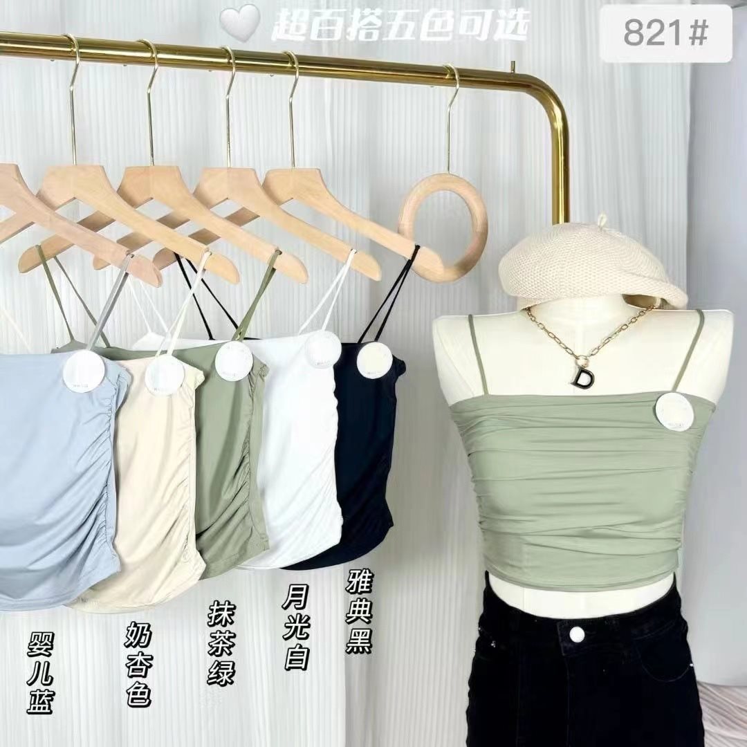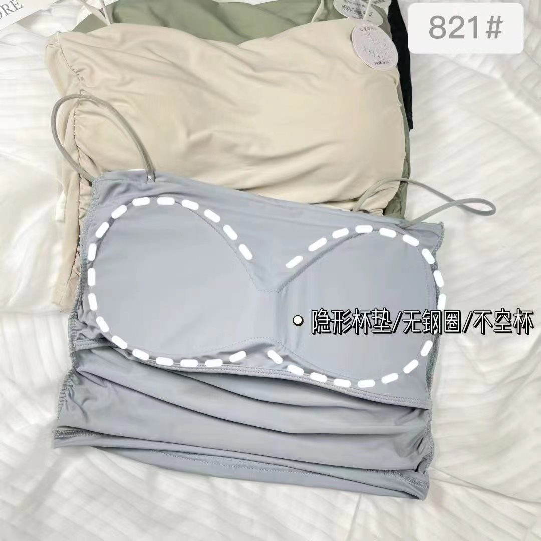 Ice Silk Pleated Camisole Women’s Chest Pad Summer Inner Wear Outer Wear One-piece Beautiful Back Tube Top Slimming Base Top