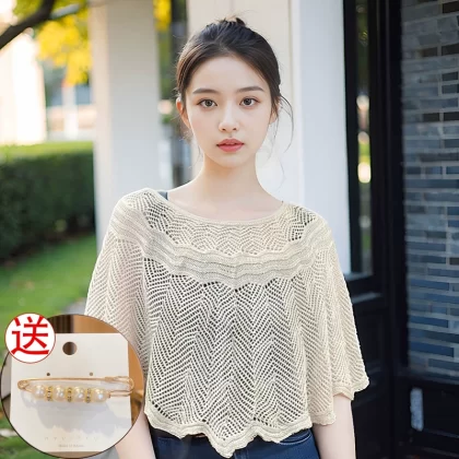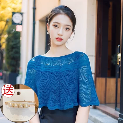Ice silk pullover women's summer versatile blouse knitted shawl