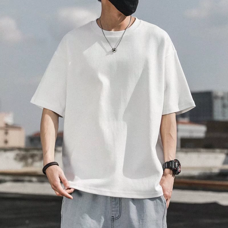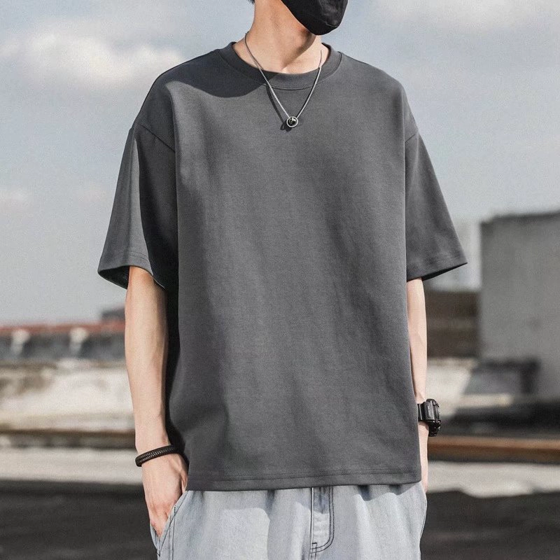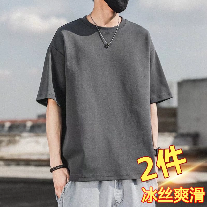 Ice silk five-point sleeve men’s elastic breathable round neck T-shirt