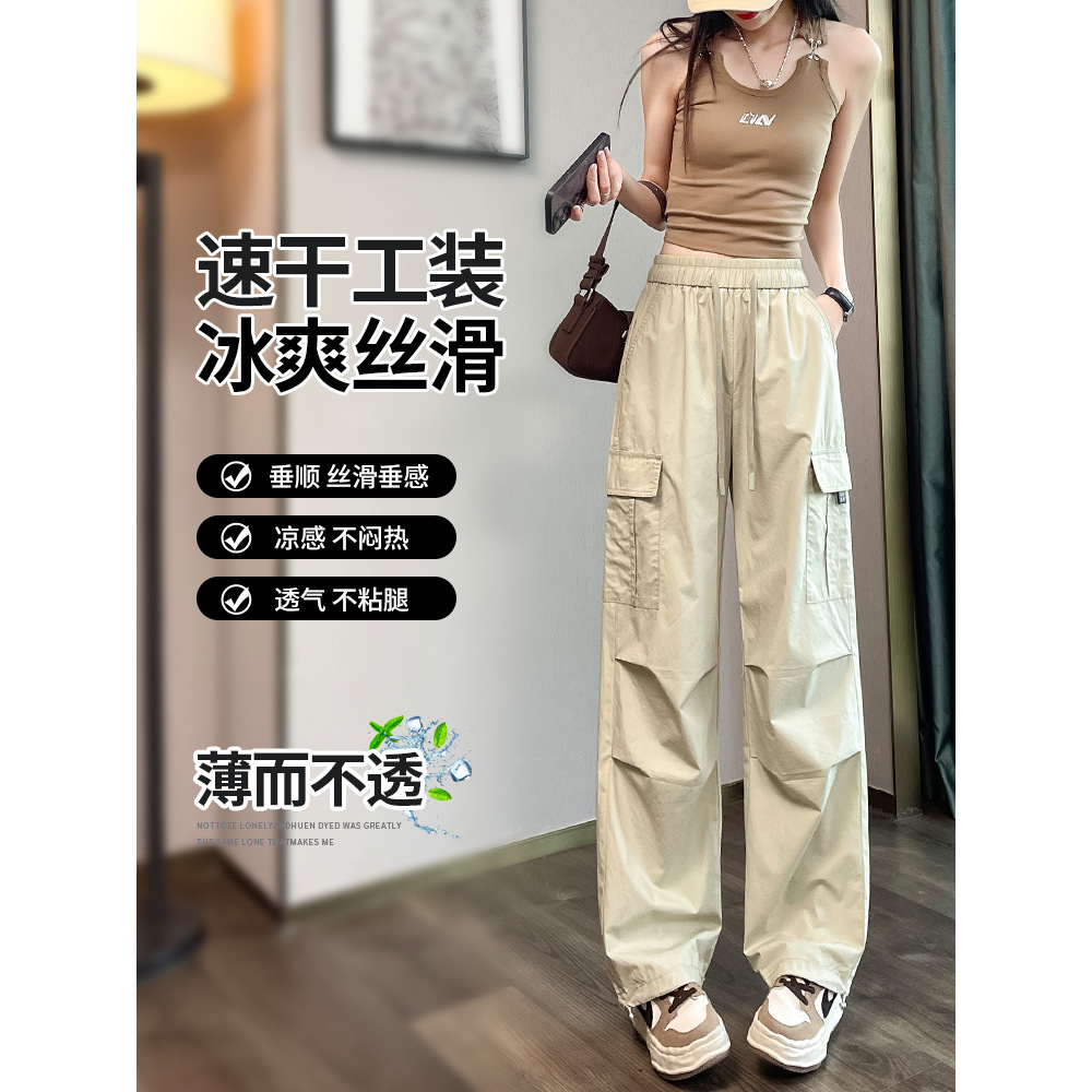 | nameOriginal | Ice Silk Quick-drying Work Pants Women's Summer Thin High Waist Drawstring Leg Climbing Casual American-style Harlan Sports Pants for Women |