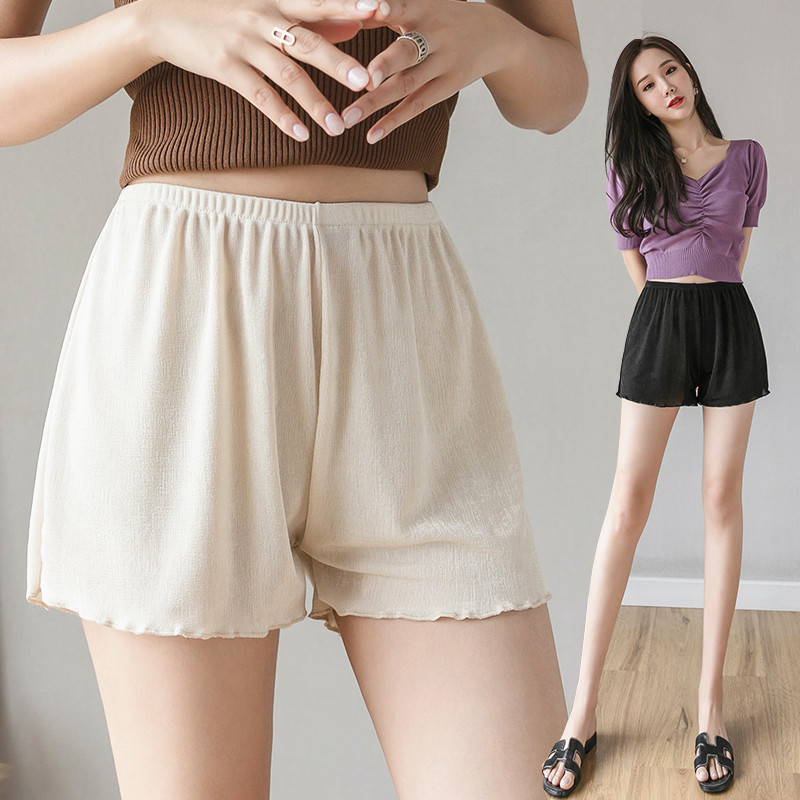 | nameOriginal | Ice Silk Safety Pants Anti-light Summer Large Size Leggings Loose Three-part Pants Women's Ruffled Home Shorts for Women |