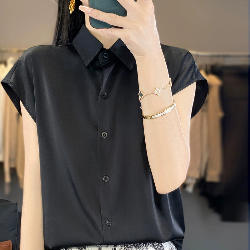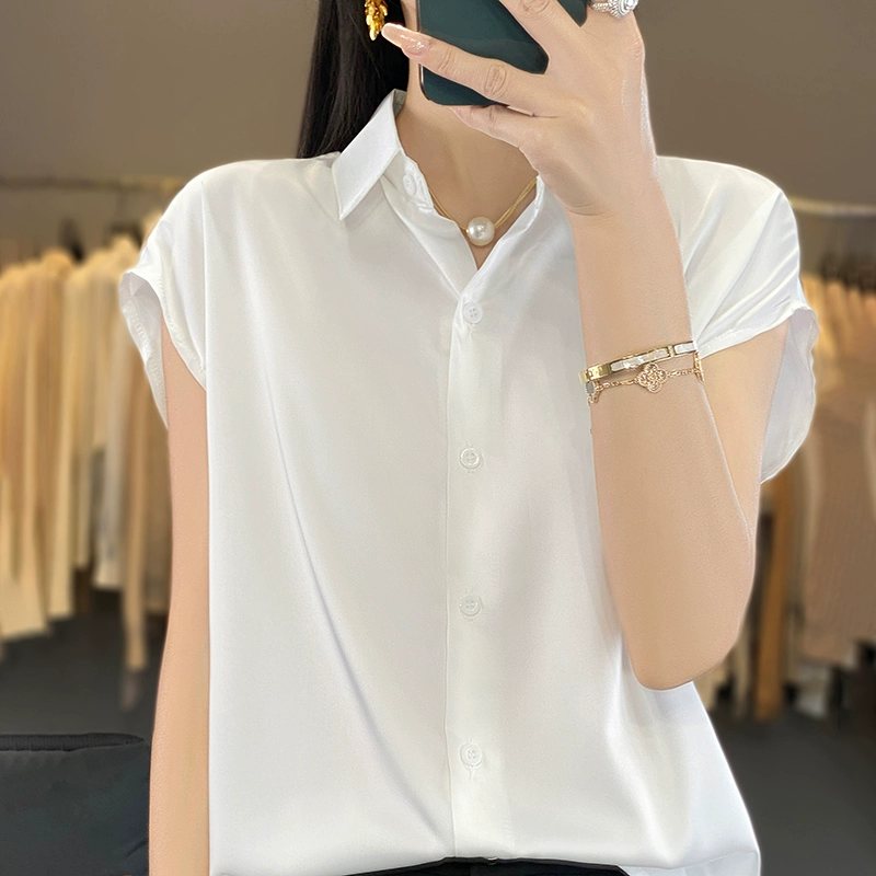 | nameOriginal | Ice silk satin short-sleeved shirt for women 2024 new temperament professional women's shirt summer polo collar chiffon top |