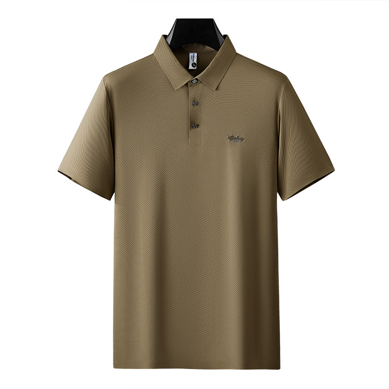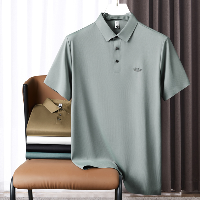 Ice Silk seamless adhesive short-sleeved polo shirt men’s business casual drape shirt collar T-shirt 2024 Summer new