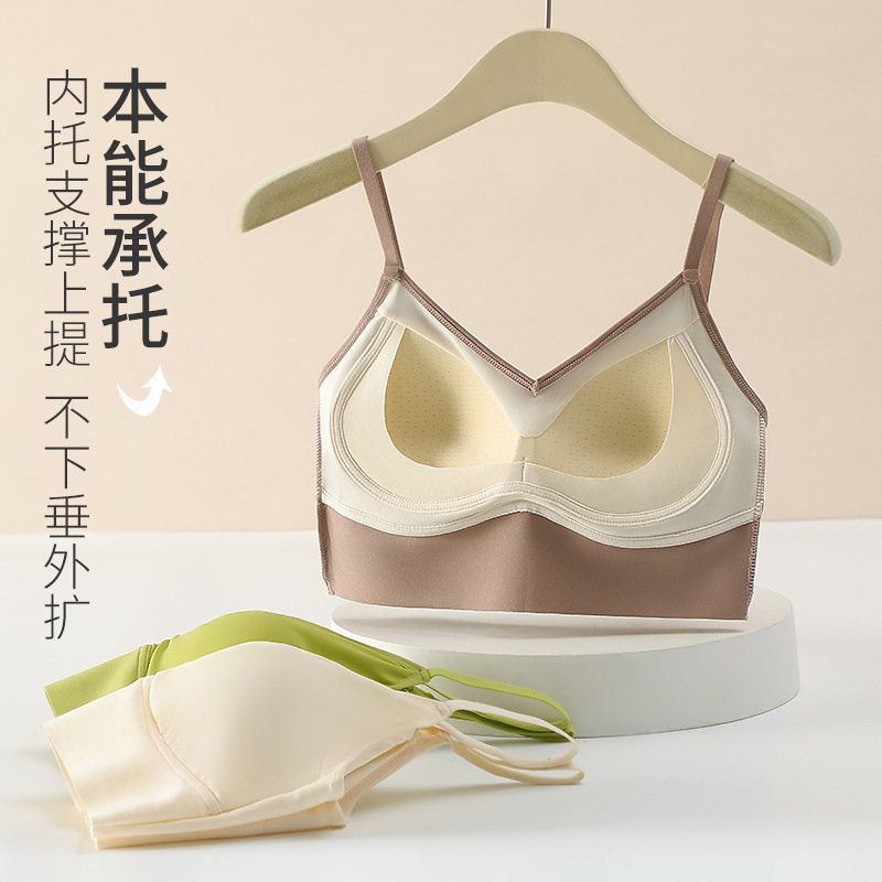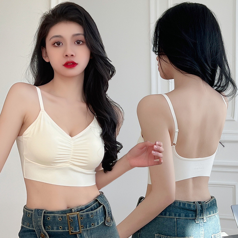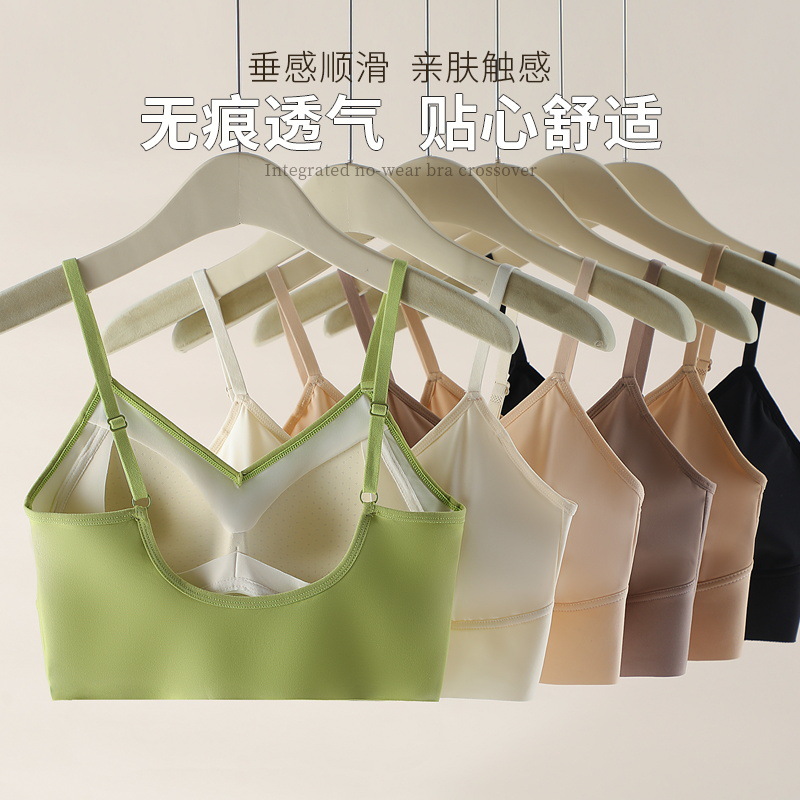 | nameOriginal | Ice Silk seamless back underwear women's one-piece camisole with chest pad bra without steel ring push up bra |