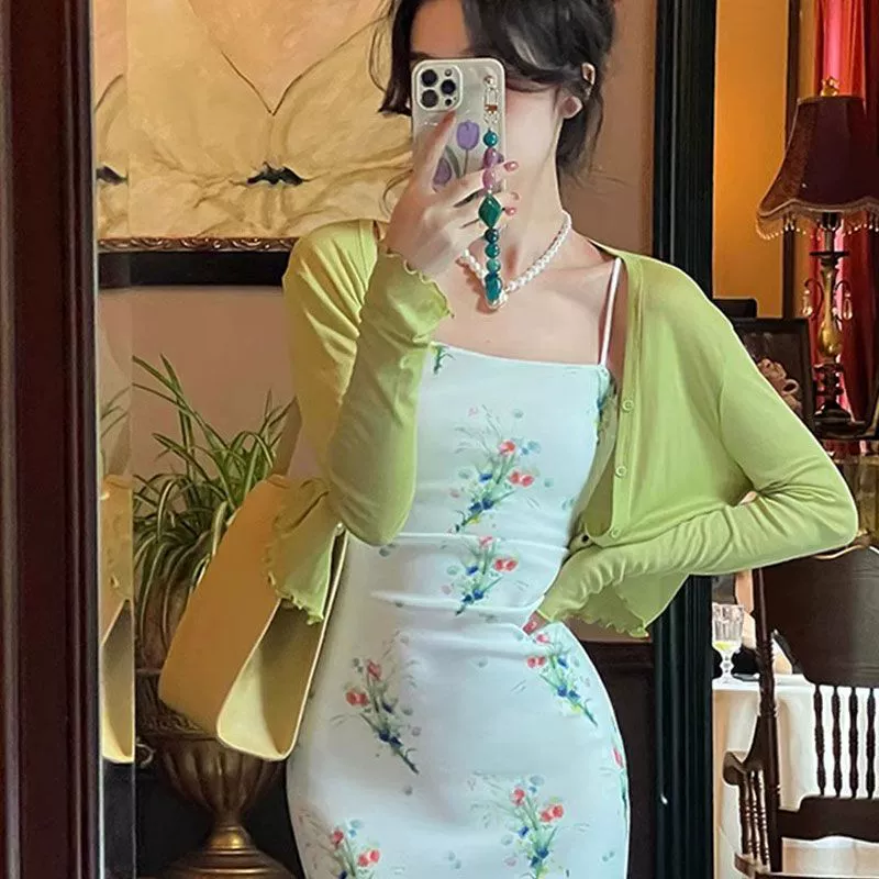 | nameOriginal | Ice silk shawl and sun protection knitted cardigan with suspender skirt |