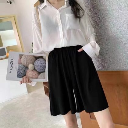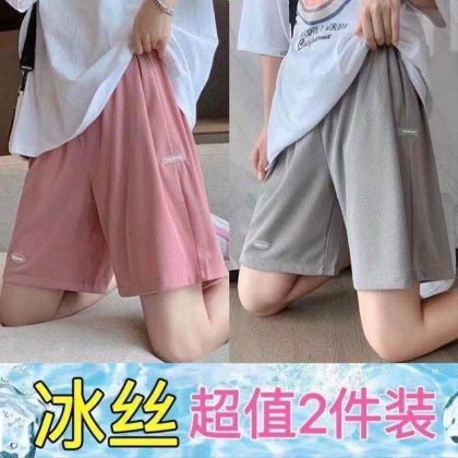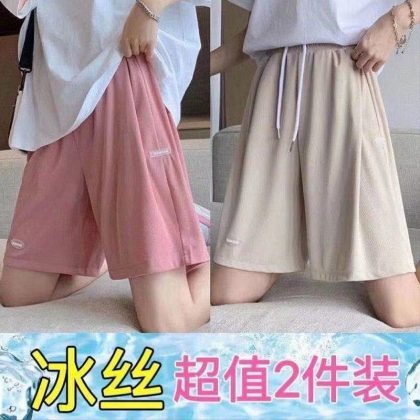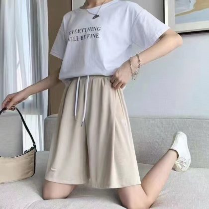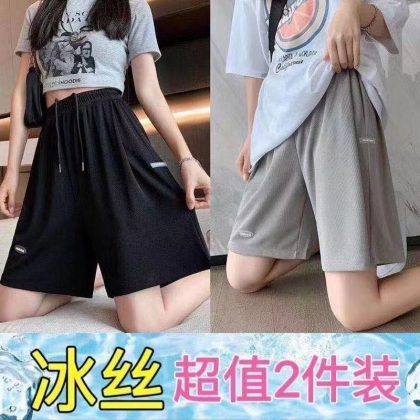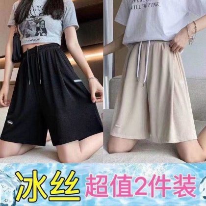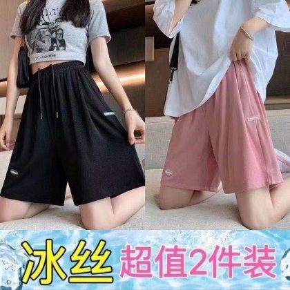 Ice Silk Shorts Women’s Summer Thin Loose Wide-leg High Waist Outer Wear Home Mid-length Pants Casual Grey Sports Pants
