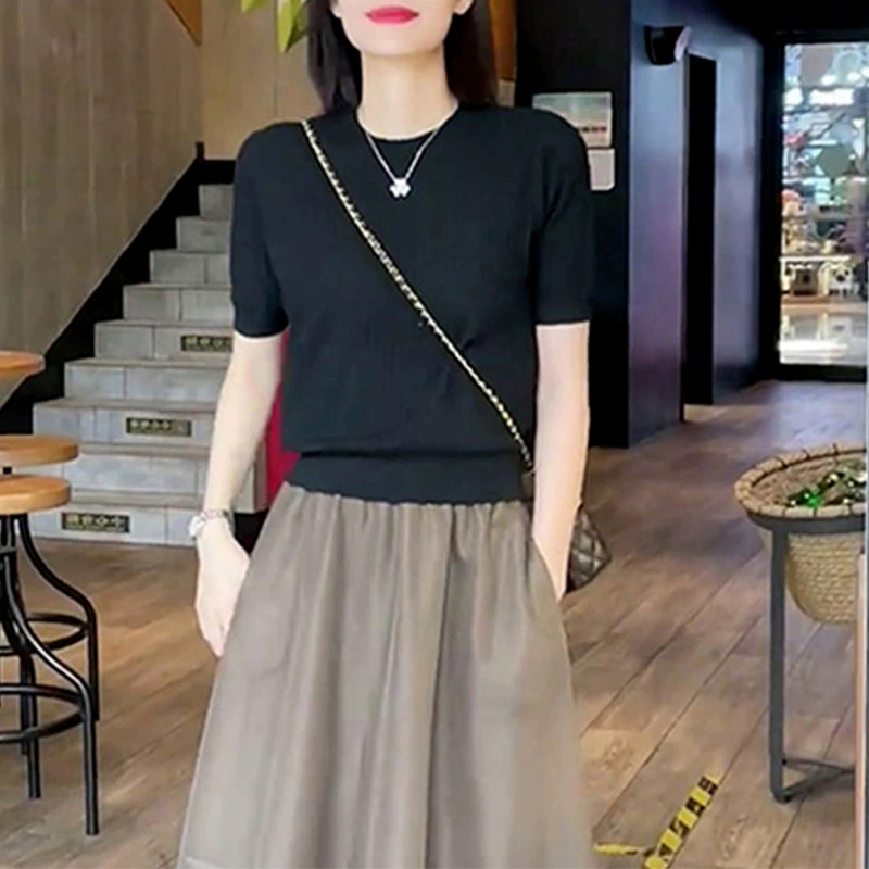 | nameOriginal | Ice silk slim round neck knitted top short-sleeved T-shirt |