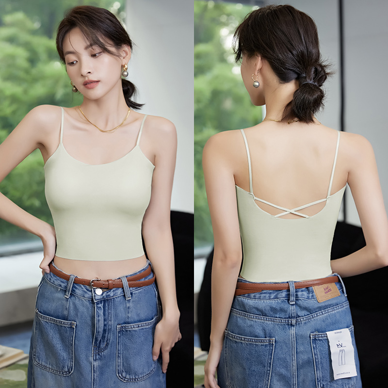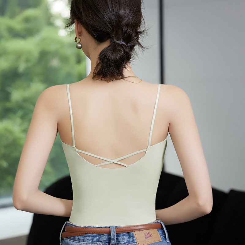 | nameOriginal | Ice Silk sling vest with fixed chest pad bottoming top anti-exposure women's summer new seamless beauty back thickened Cup |