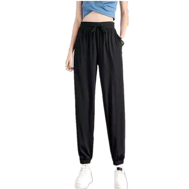 Ice Silk Sports Pants for Female Students Korean-style Loose plus size Slim-fit Summer Thin Casual Pants Women's Ankle-length Pants