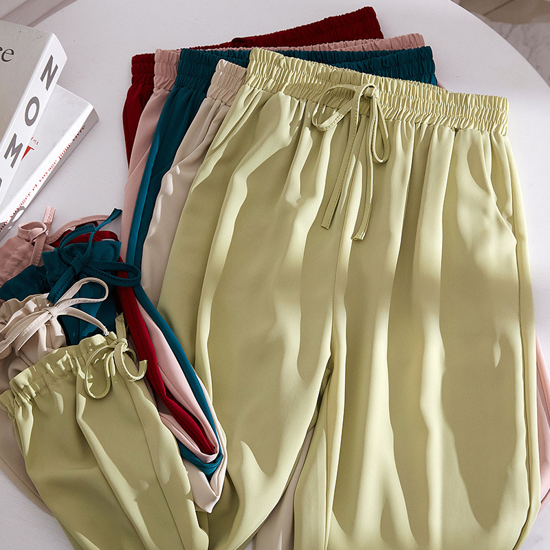 | nameOriginal | Ice Silk Sports Pants Women's Summer Thin Dosing Loose High Waist Slimming Western-style Wide-leg Harlan Straight Casual Pants |