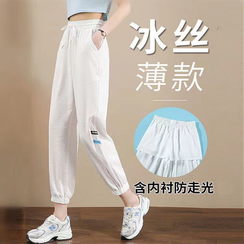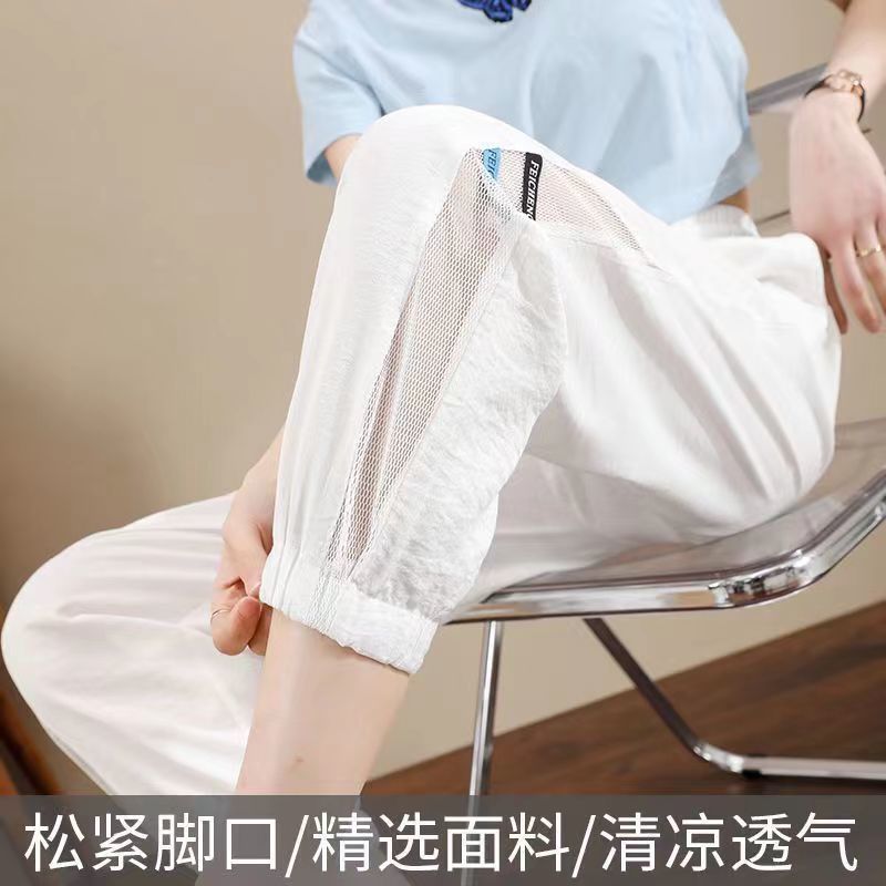 Ice Silk Sports Pants Women's Summer Thin Loose Hollow Women's Pants Ankle-point Quick-drying Pants Lantern Casual Harlan Pants