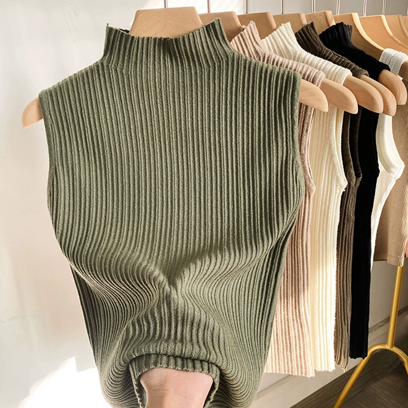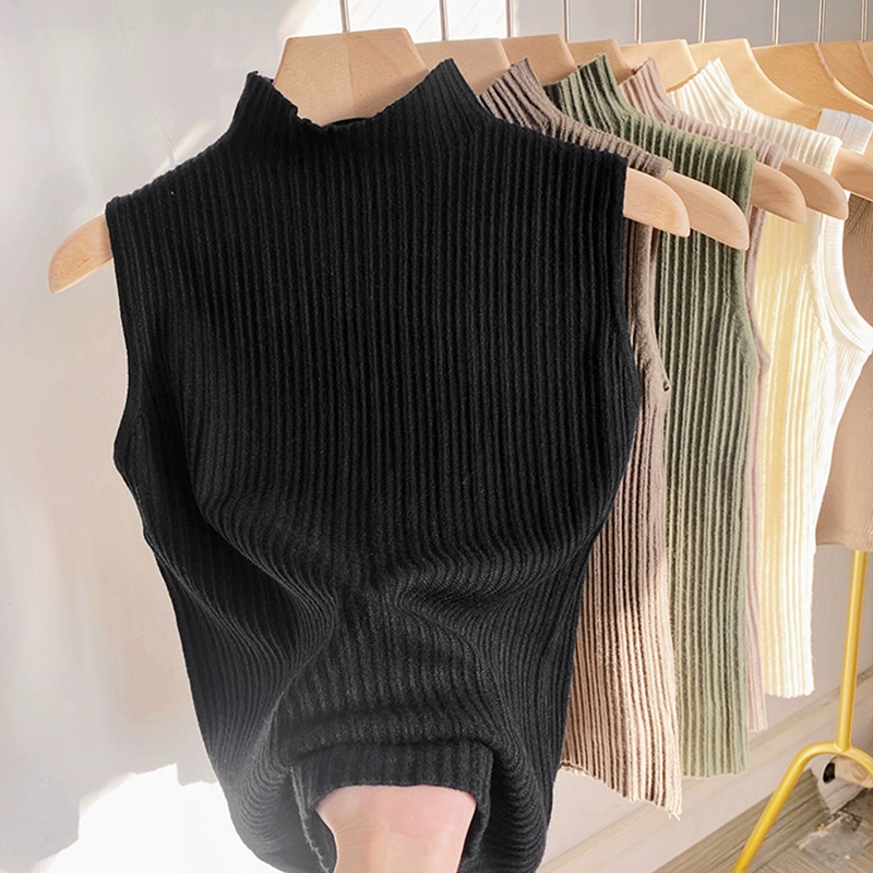 Ice silk spring and summer waistcoat half high collar pit strip sleeveless suspender belt