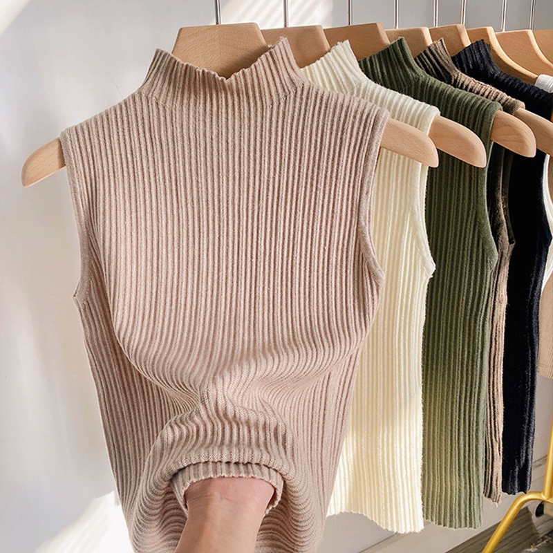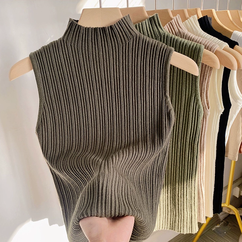 Bingshi spring and summer, shoulder half -high neck pits, sleeveless suspenders