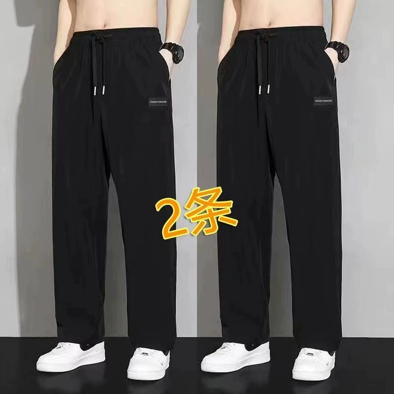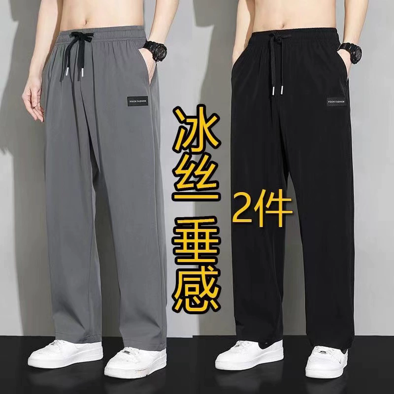 | nameOriginal | Ice silk straight pants men's summer thin quick-drying drapey wide-leg sports elastic loose large size casual trousers |