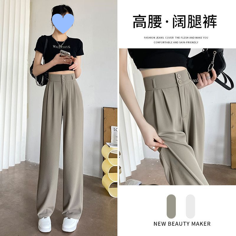 | nameOriginal | Ice Silk Suit Pants Women's Spring and Summer 2024 New High Waist Loose Narrow Edition Straight Leg Wide Leg Pants Dosing |
