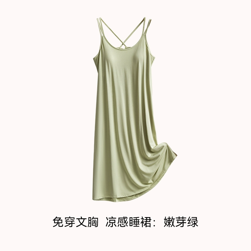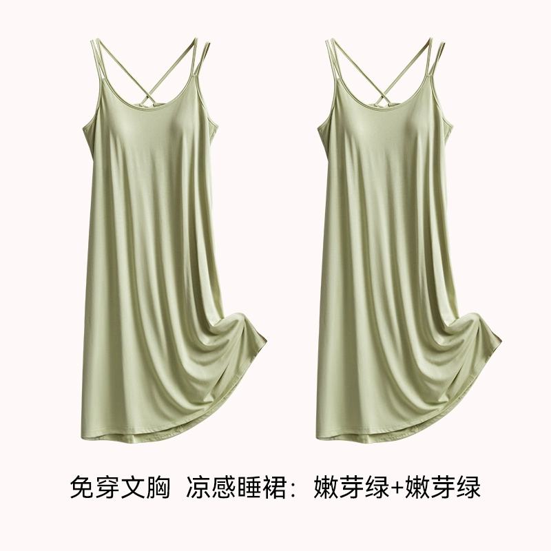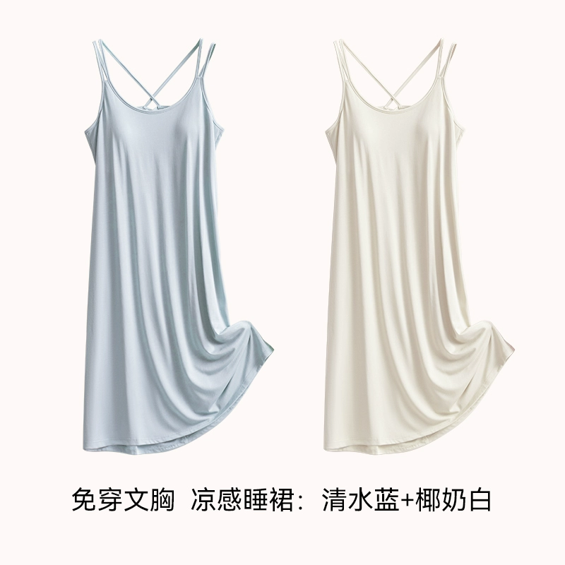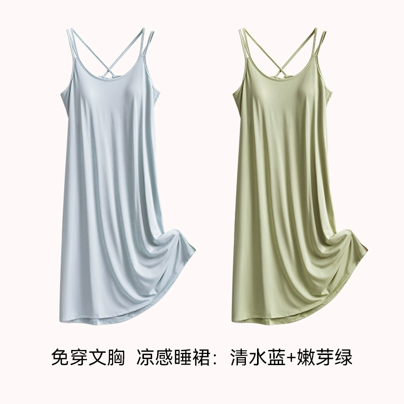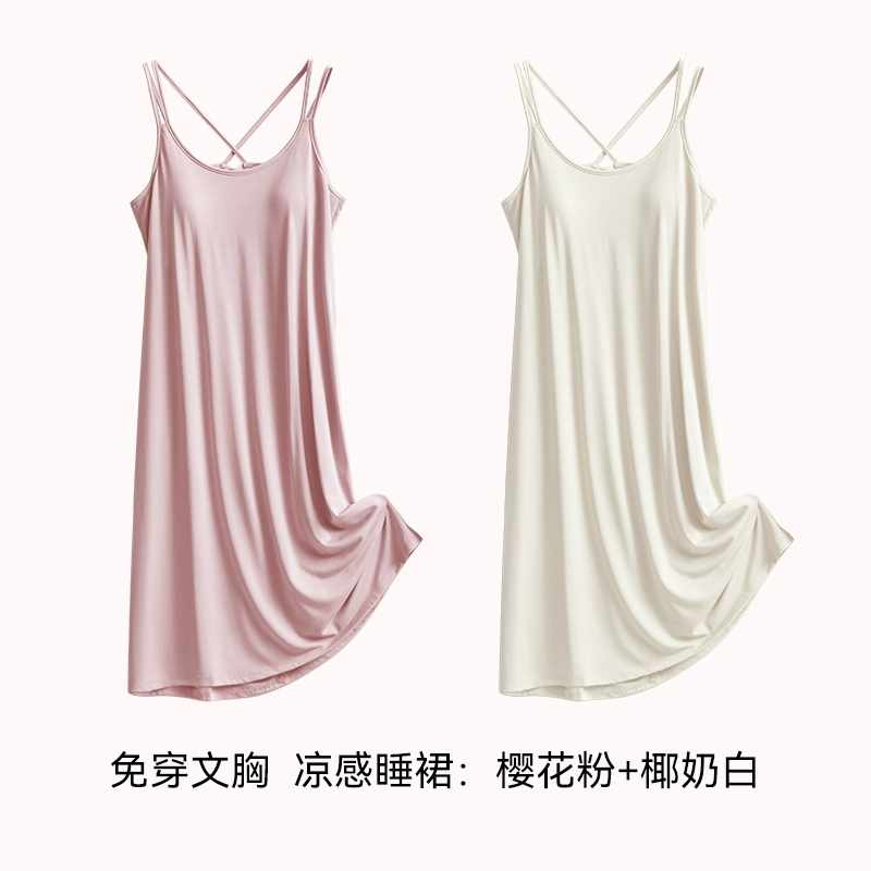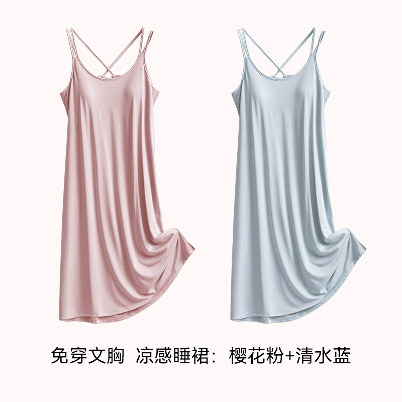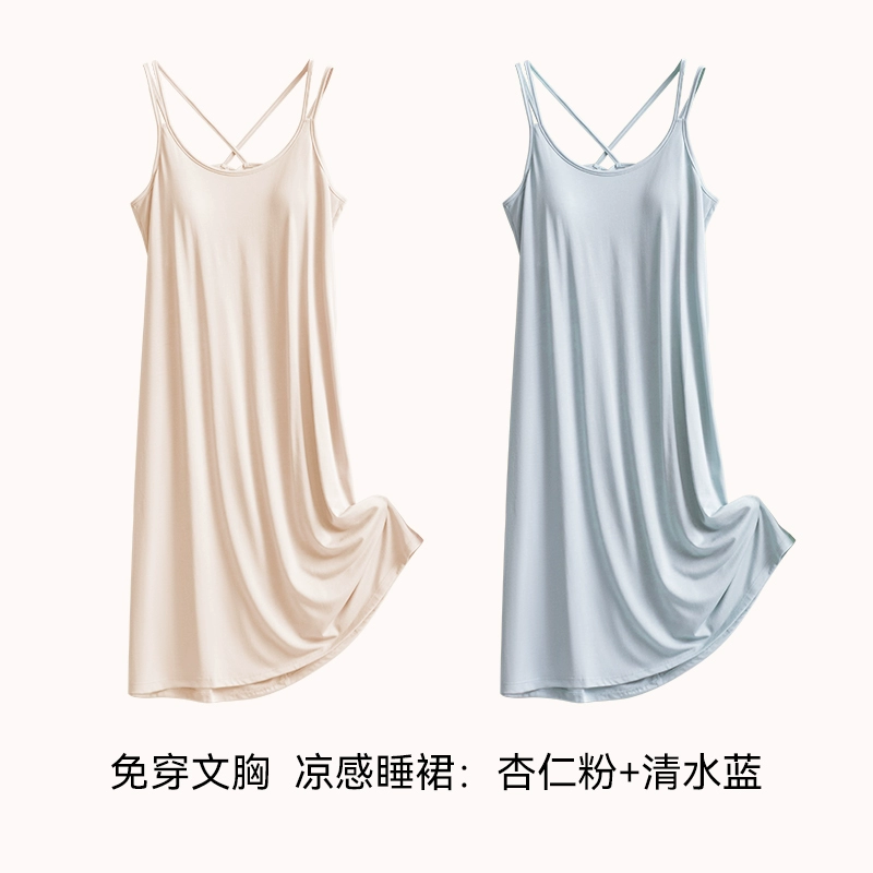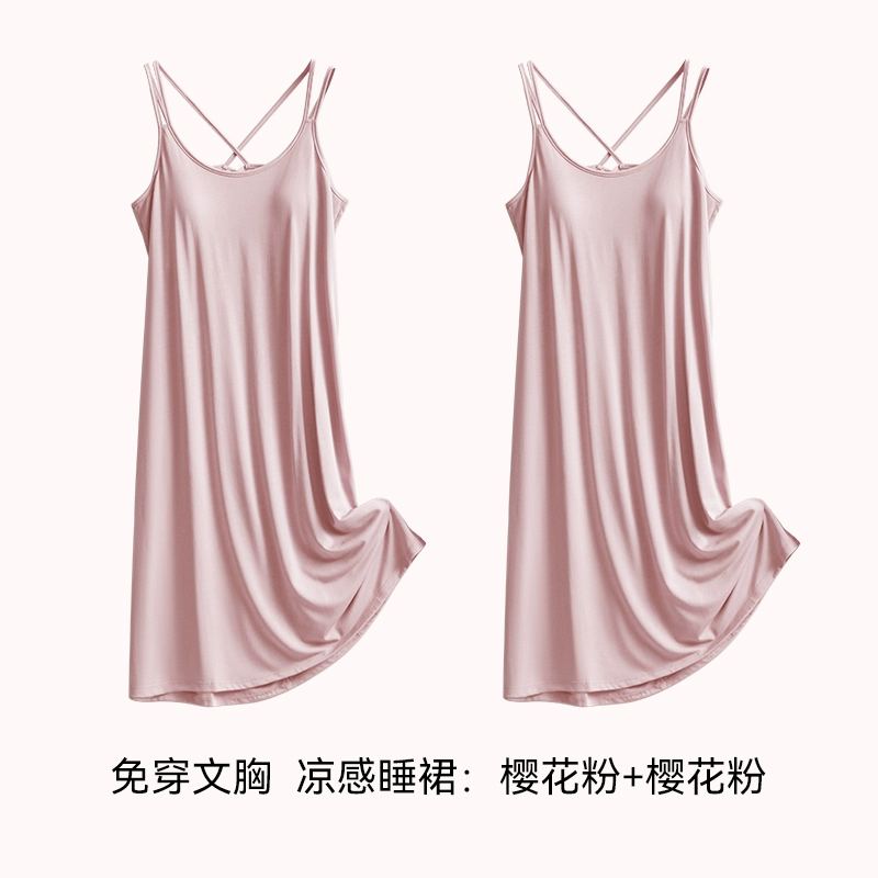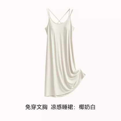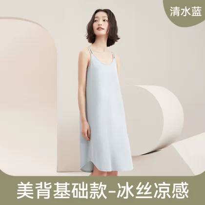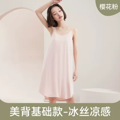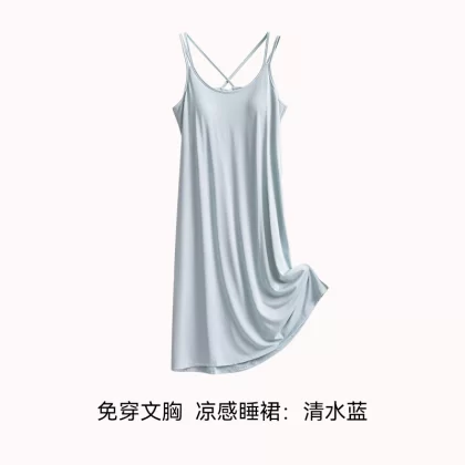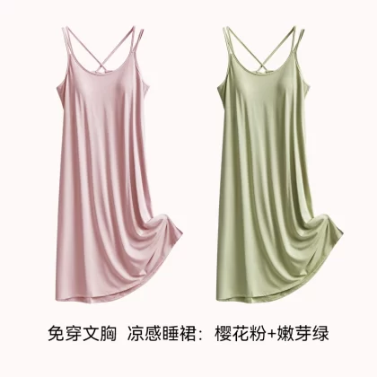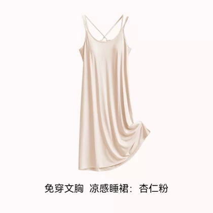 | nameOriginal | Ice silk summer all-in-one bra suspender mid-length pajamas |