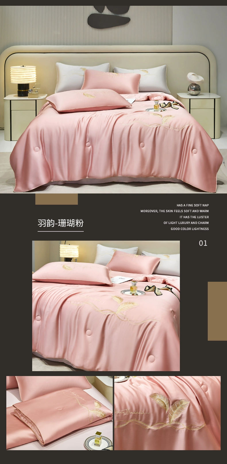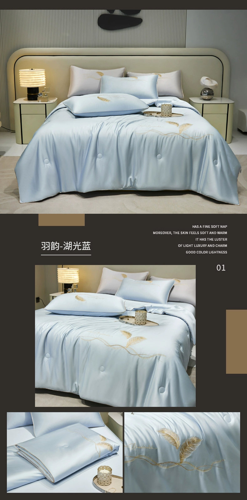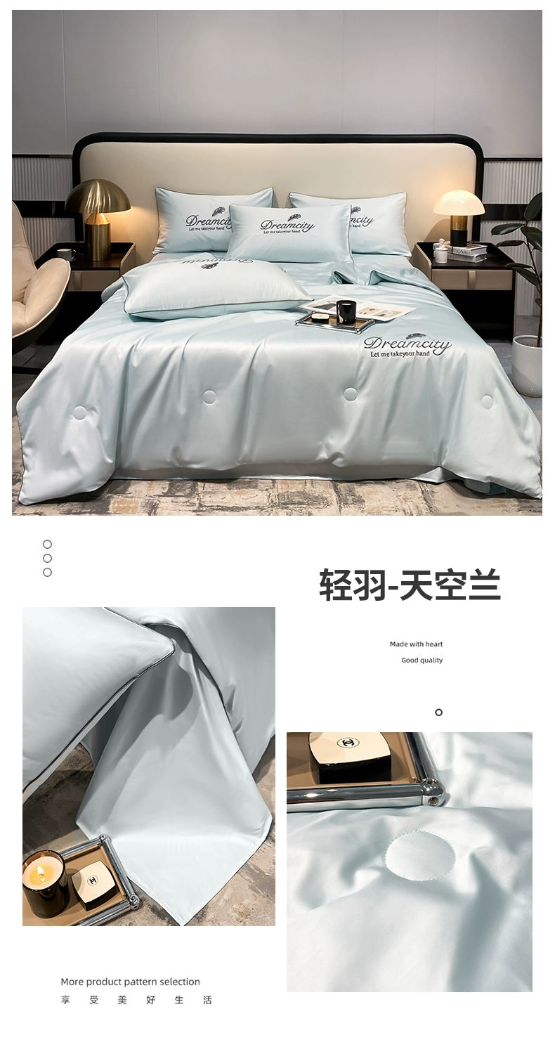 | nameOriginal | Ice silk summer cool quilt set of three or four pieces, washed high-end silk, light luxury, smooth naked sleeping, thin Tencel air-conditioned quilt |
