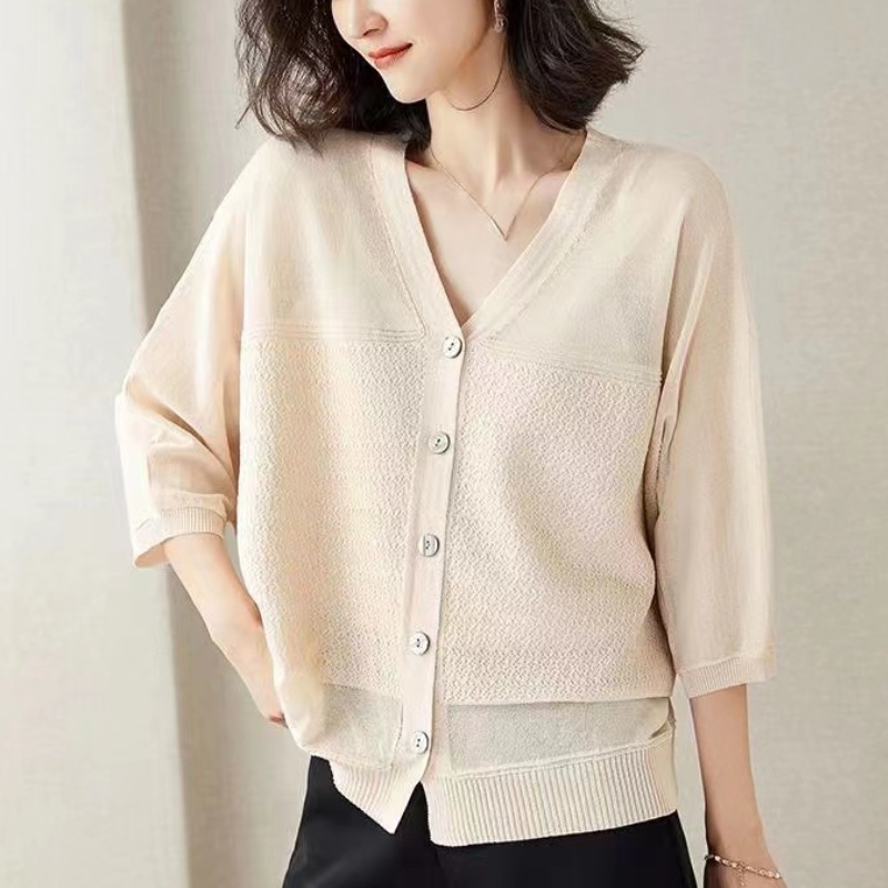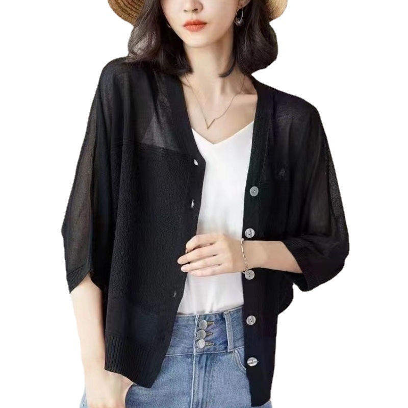 | nameOriginal | Ice Silk sun protection air conditioning shirt thin summer blouse plus size chubby girl 3/4 sleeve outer knitted cardigan women's coat |